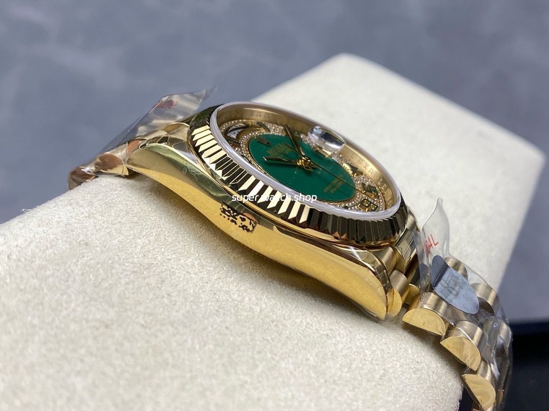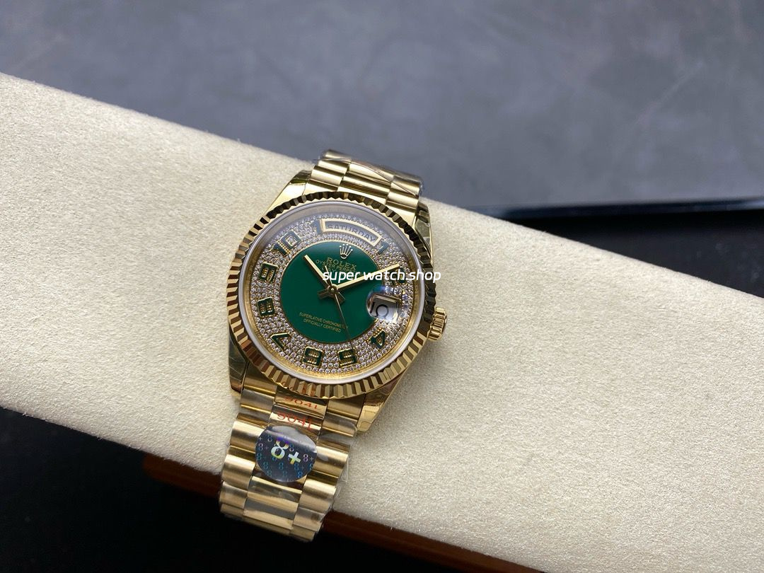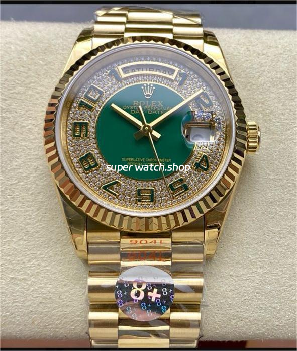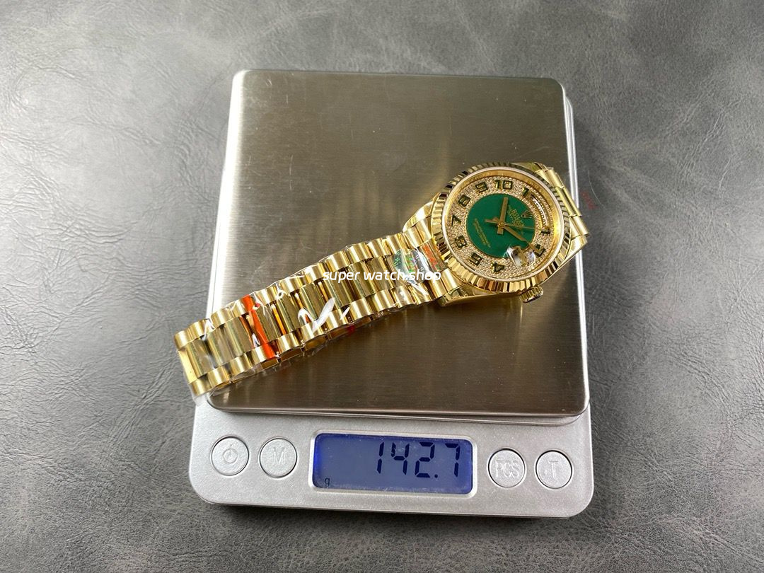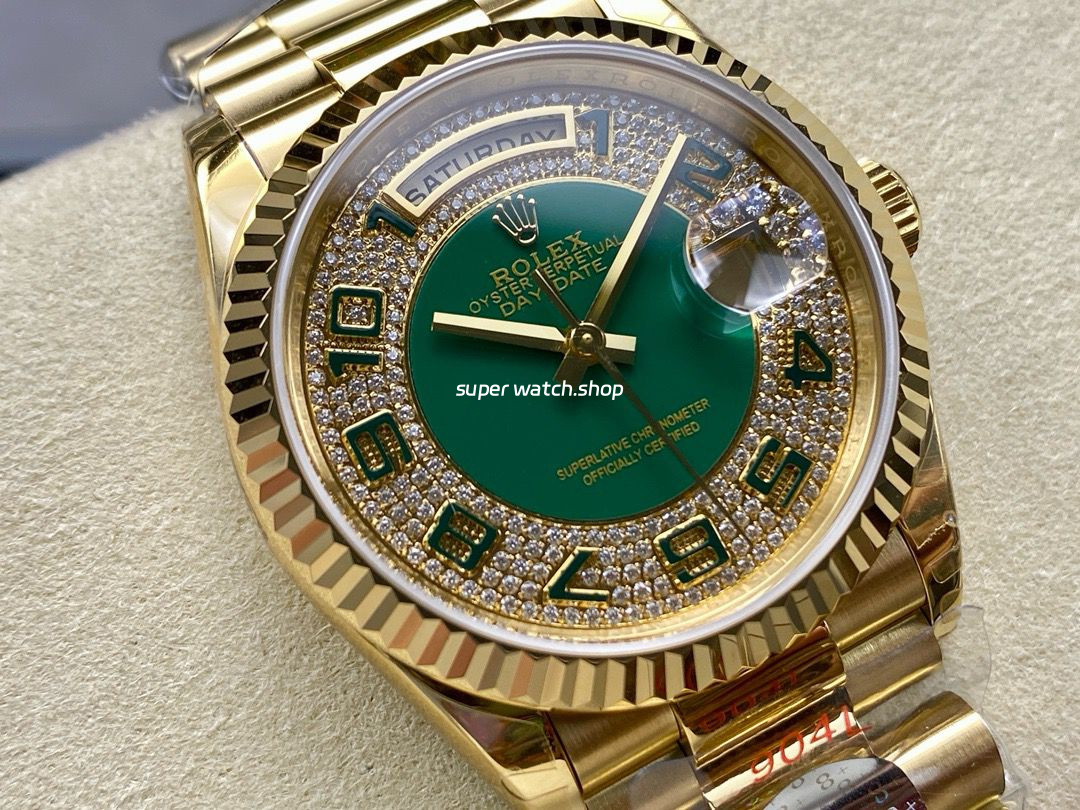 8+ Factory Counterweight Rolex Day-Date 118238 36mm Full Yellow Gold Arabic Numerals Diamond&Green Dial