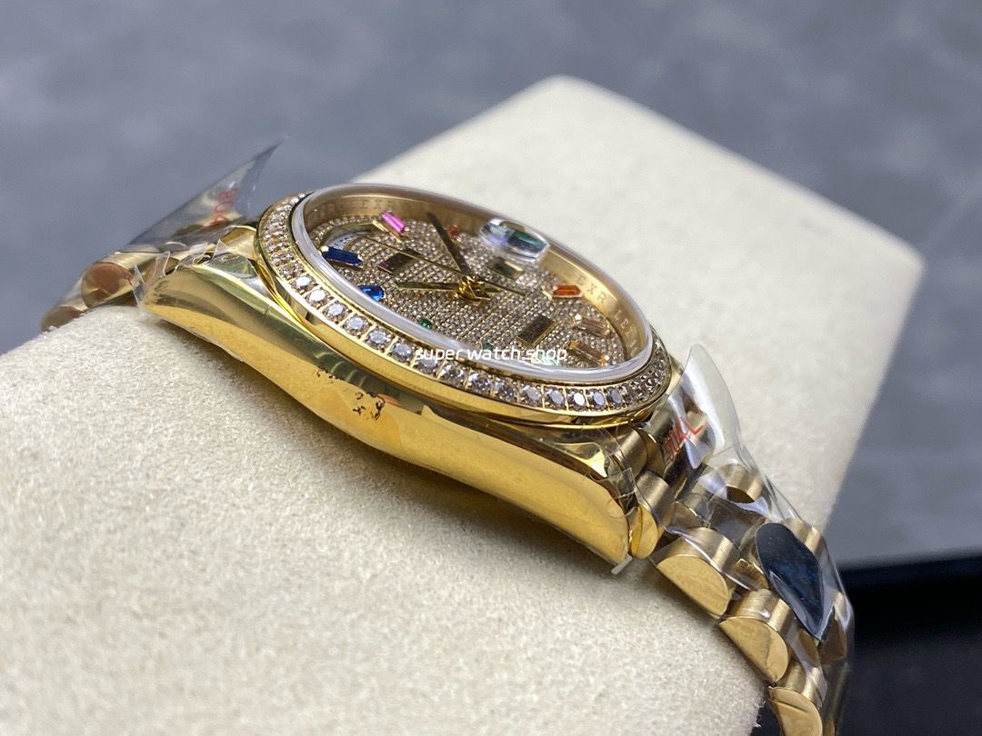 8+ Factory Counterweight Rolex Day-Date 128348RBR-0030 36mm Diamond Yellow Gold Bezel Full Yellow Gold Baguette Diamond Yellow Gold Dial