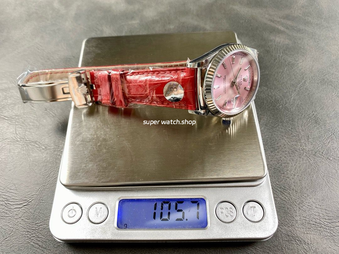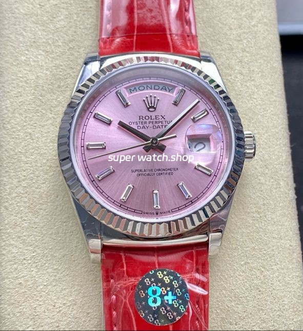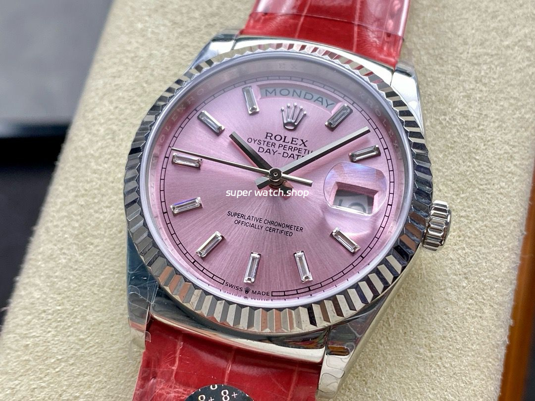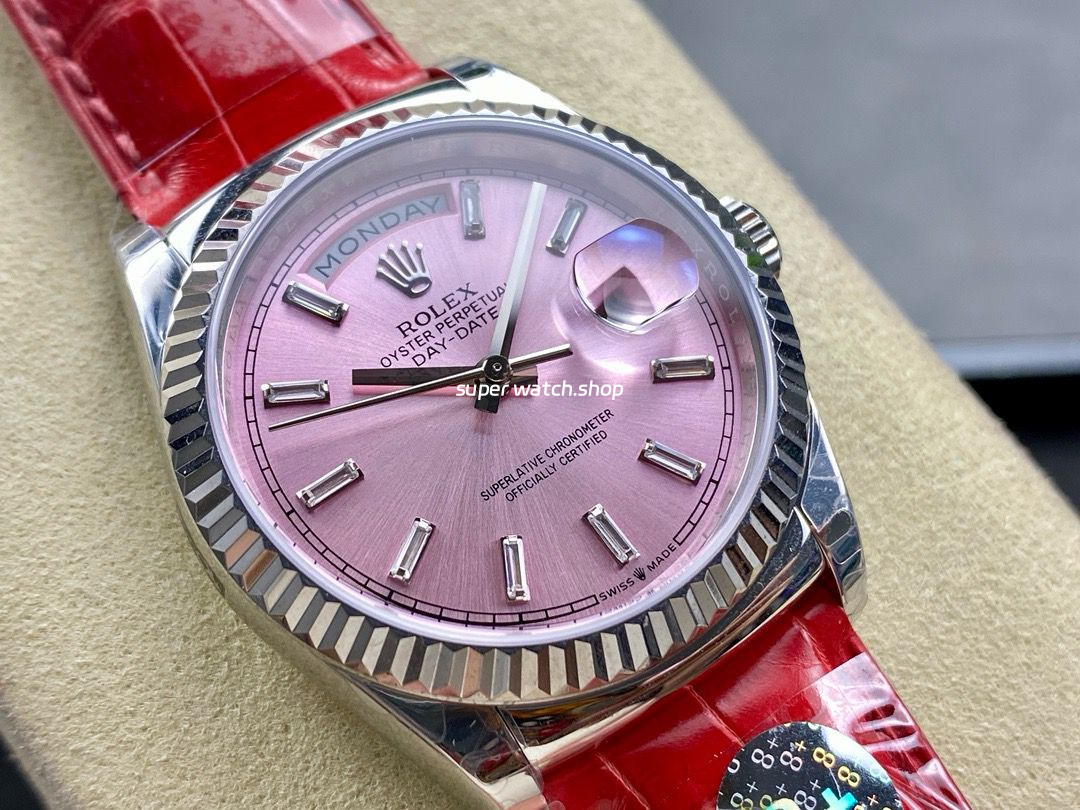 Be the first to review “8+ Factory Counterweight Rolex Day-Date 36mm 128239-0071 White Gold Crocodile Leather Strap Baguette Diamond Pink Dial”