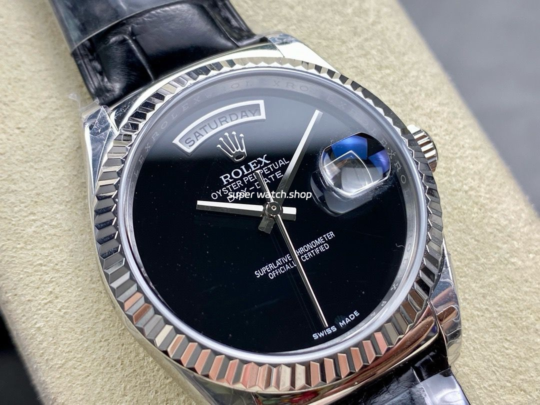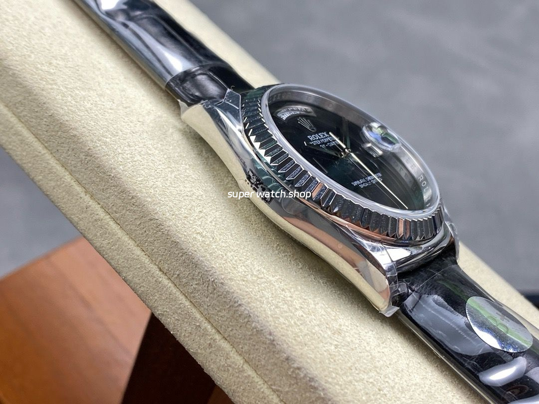 Be the first to review “8+ Factory Counterweight Rolex Day-Date 36mm 18206 White Gold Crocodile Leather Strap Black Dial”