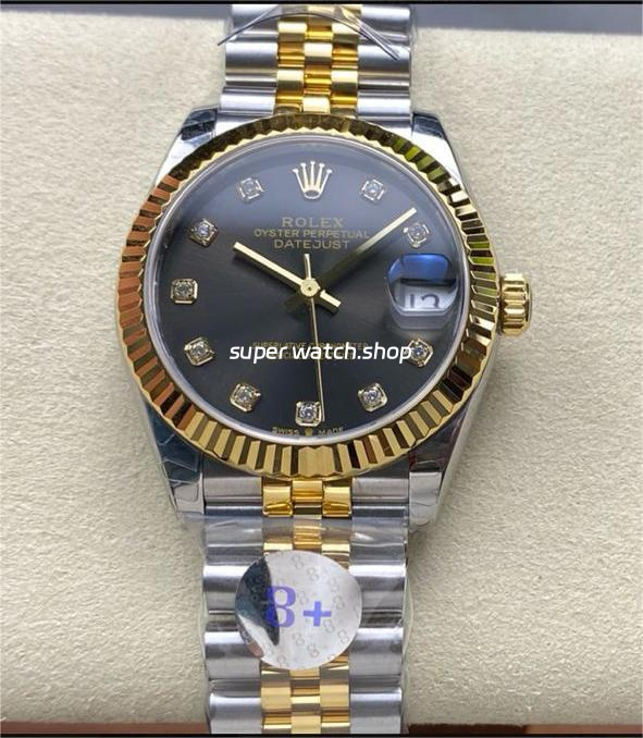 8+ Factory Rolex Datejust 278273-0022 31mm Half Yellow Gold Diamond Dark Grey Dial Jubilee
