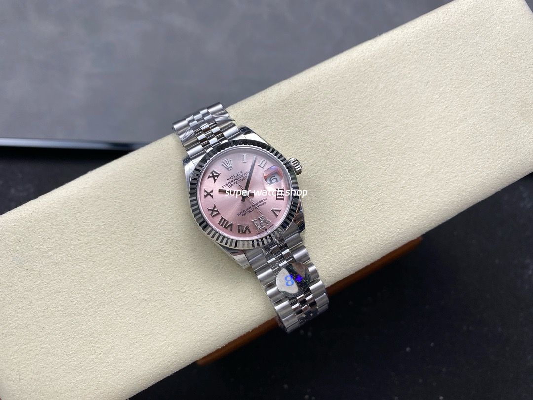 8+ Factory Rolex Datejust 278274-0024 31mm Full Steel Roman Numerals Diamond Pink Dial Jubilee