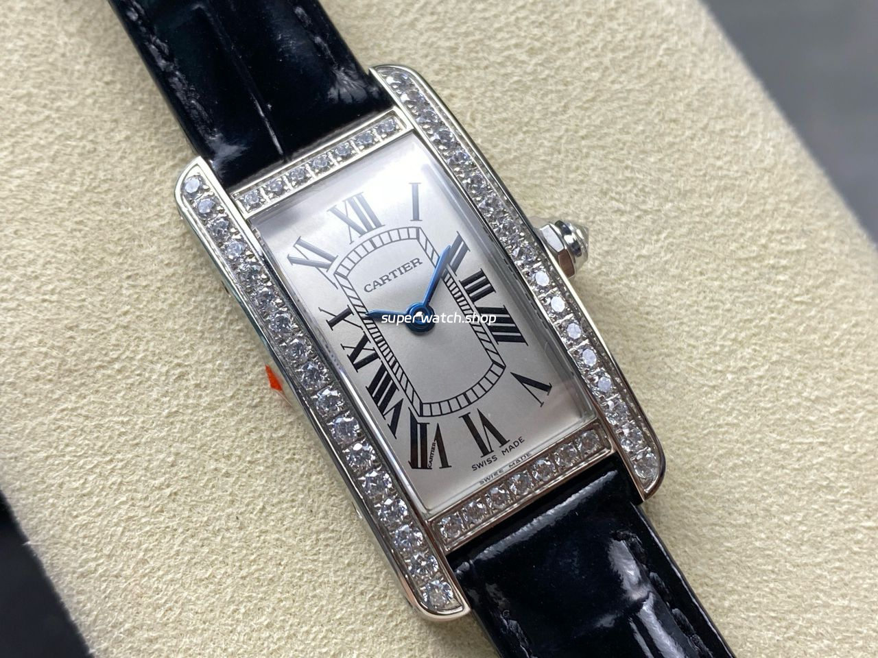 8848 Factory Cartier Tank Américaine 19mm Diamond Roman Numerals Silver Dial