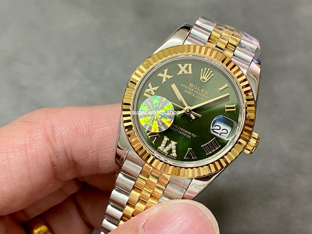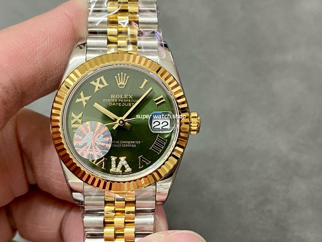 A+ Factory Rolex Datejust 278273-0016 31mm Half Yellow Gold Roman Numerals Diamond Green Dial Jubilee