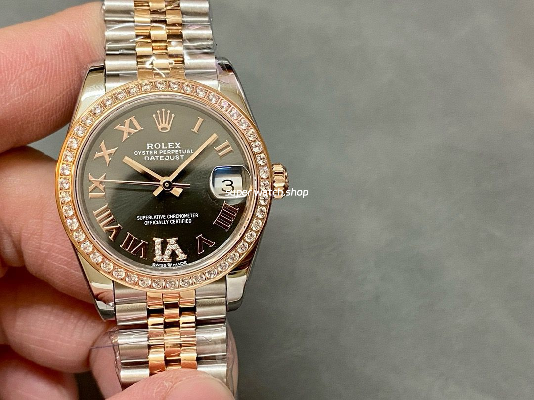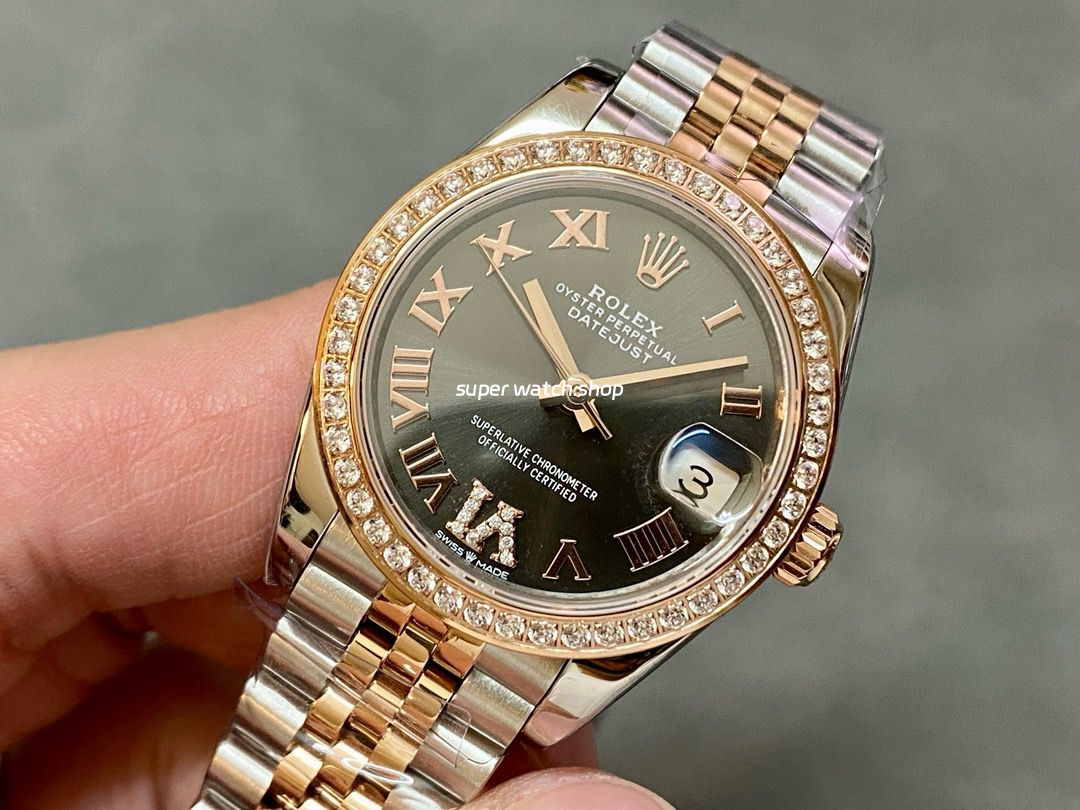 A+ Factory Rolex Datejust 278381RBR-0030 31mm Diamond Bezel Half Rose Gold Roman Numerals Diamond Grey Dial Jubilee
