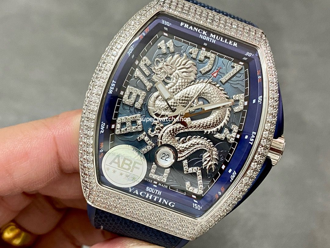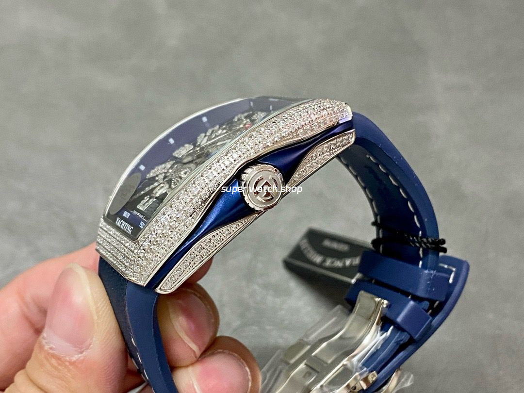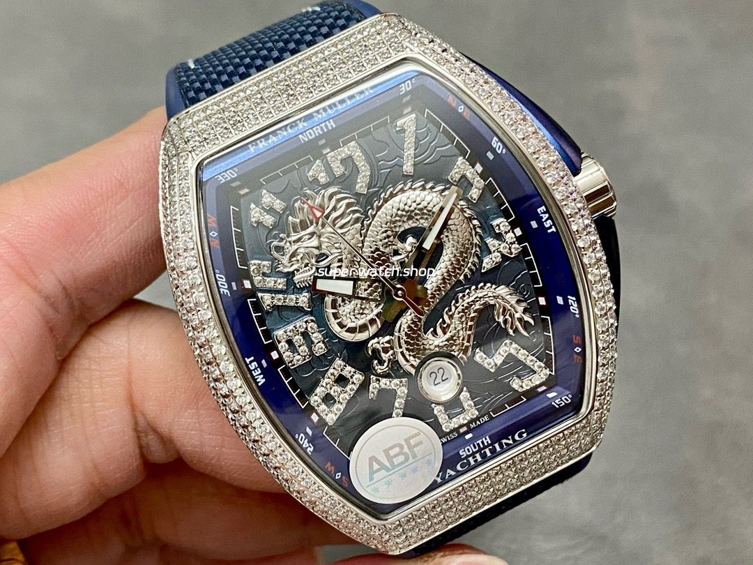 ABF Factory Franck Muller Dragon King Limited Edition Vanguard V45 44mm Diamond Steel Rubber Strap Blue Dial