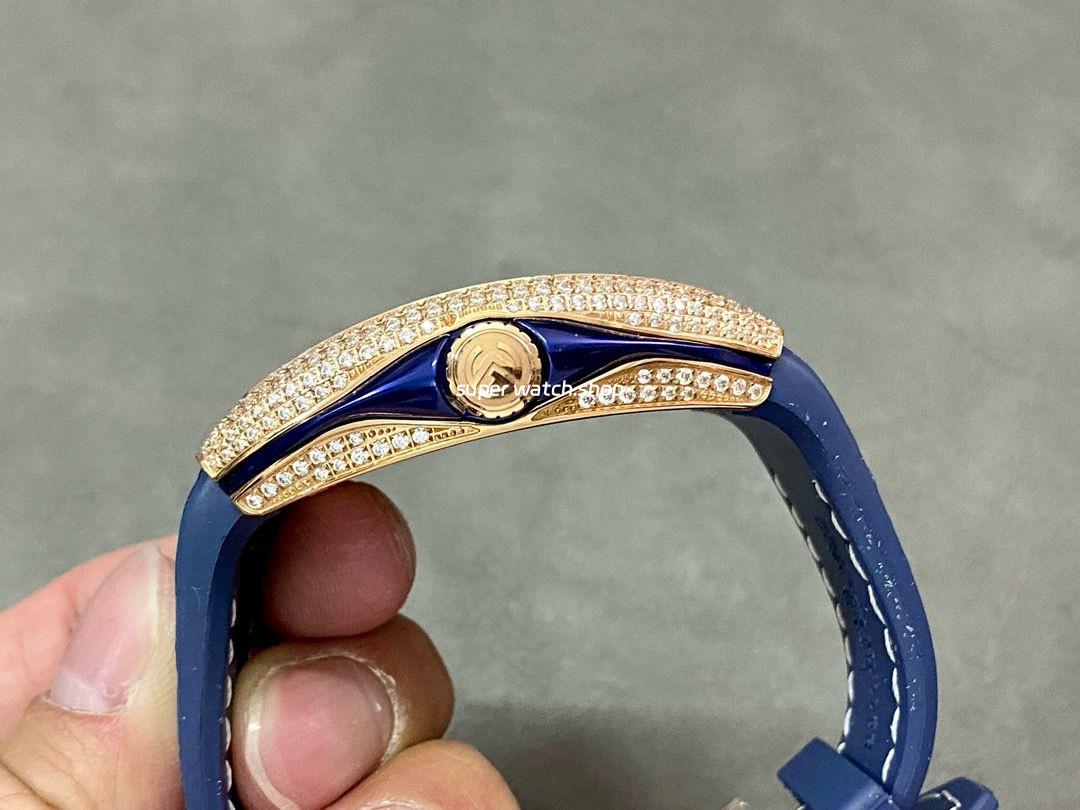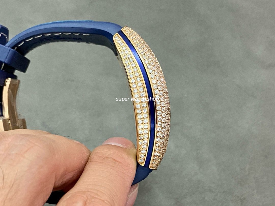 ABF Factory Franck Muller Vanguard V45 44mm Diamond&Rose Gold Rubber Strap Blue Dial