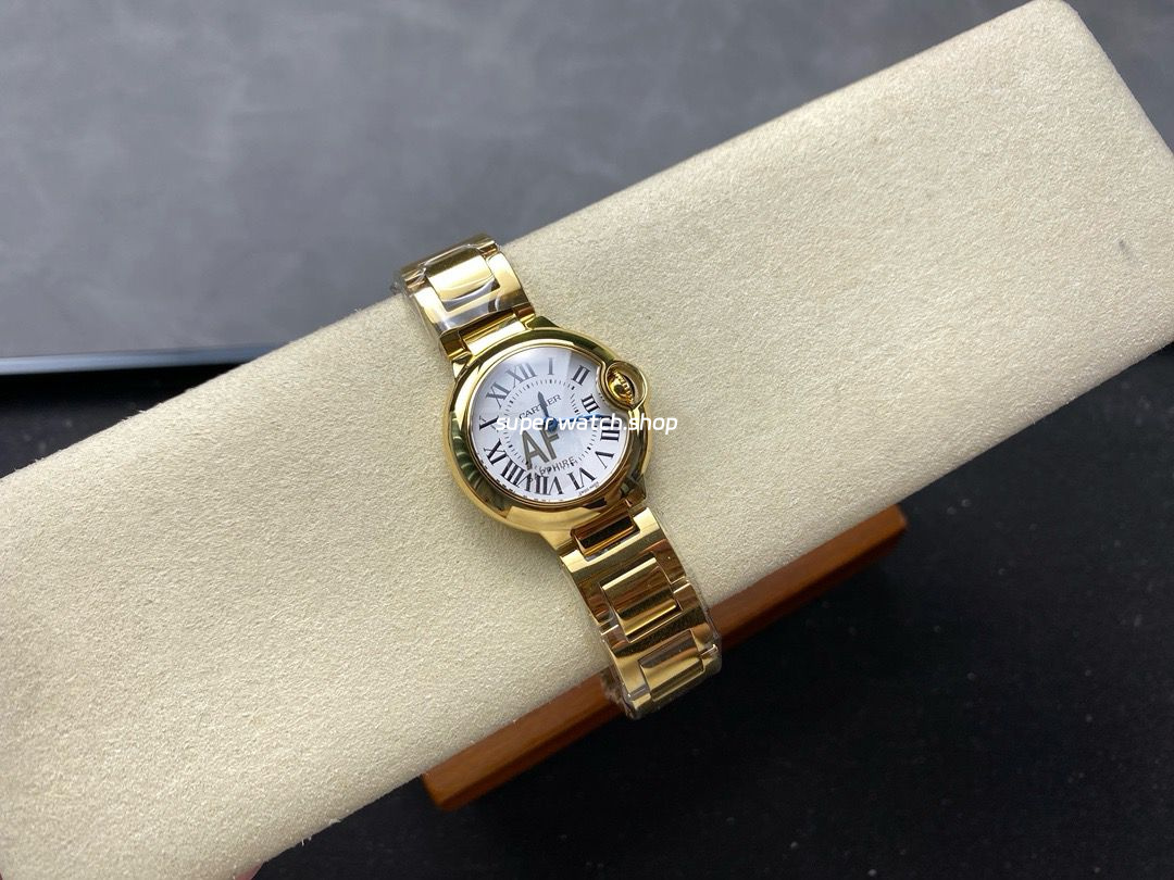 AF Factory Cartier Ballon Bleu W69001Z2 28mm Full Gold Roman Numerals Silver Dial