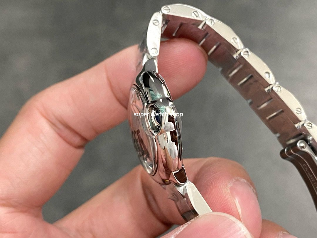 A notable improvement is the upgraded hand axis size, which has been precisely adjusted to fit original Cartier hands. This breakthrough allows the replica watch to achieve the same visual effect as the genuine model, significantly enhancing authenticity.
