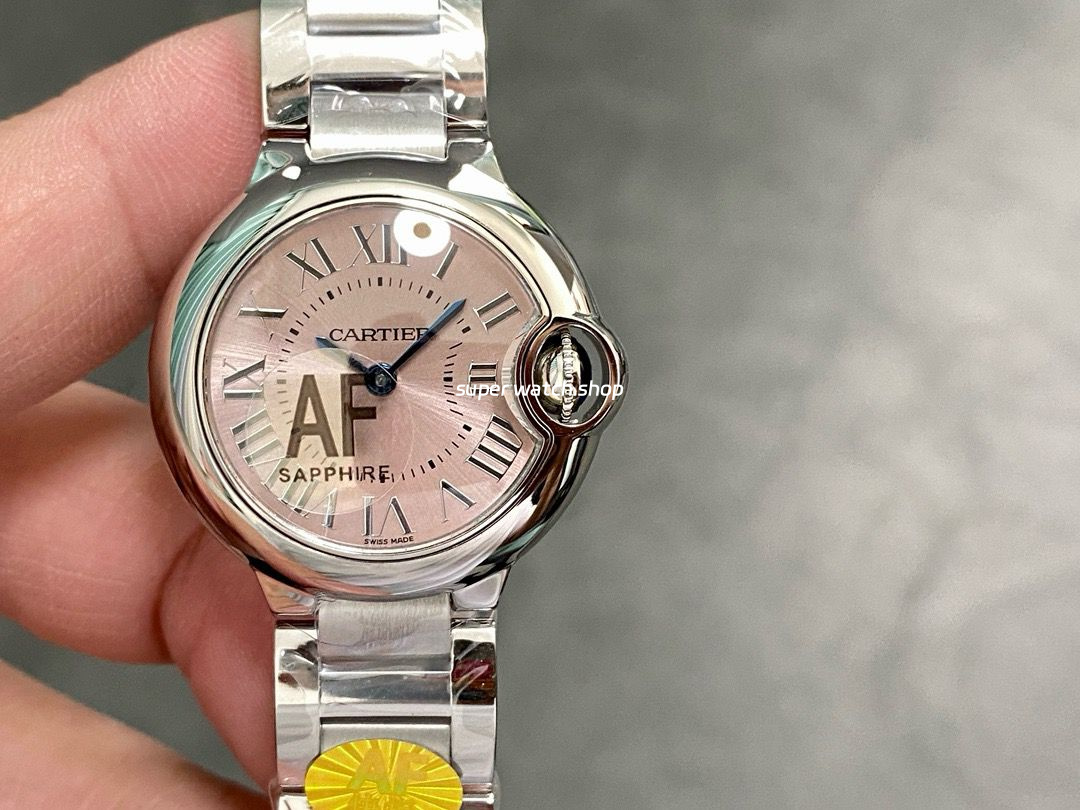 AF Factory Cartier Ballon Bleu W6920034 28mm Full Steel Roman Numerals Pink Dial