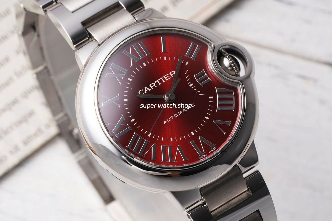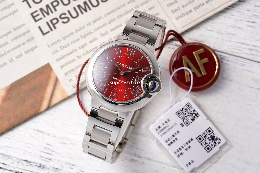 AF Factory Cartier Ballon Bleu WSBB0052 33mm Full Steel Roman Numerals Red Dial