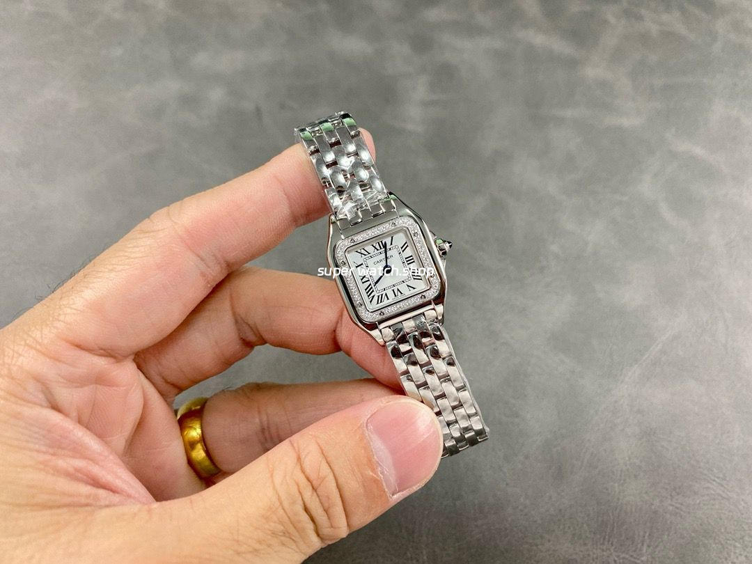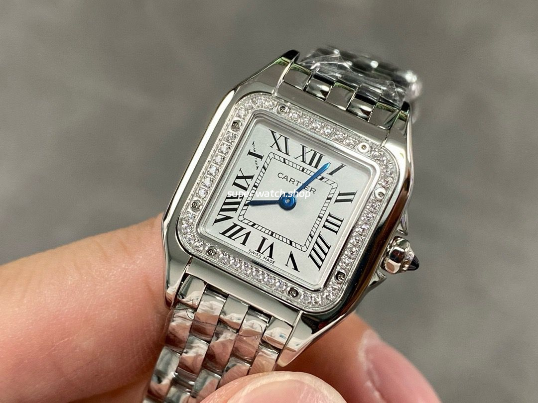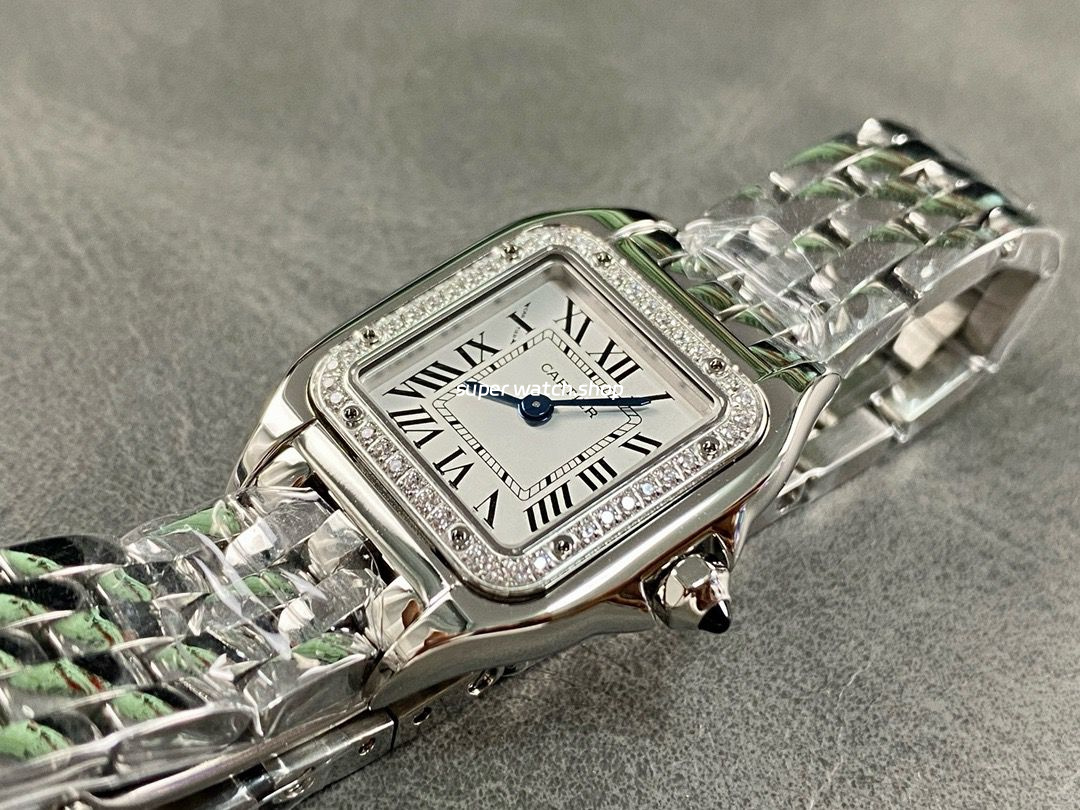 AF Factory Cartier Panthère W4PN0007 22mm Diamond Bezel Full Steel Roman Numerals Silver Dial