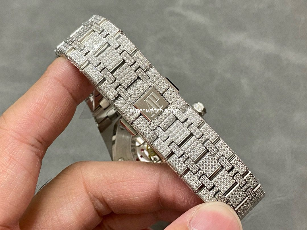 In the world of luxury timepieces, some watches captivate at first glance, radiating an irresistible brilliance. The AP Audemars Piguet Royal Oak 15400 Full Diamond meticulously crafted by AMG Factory, elevates opulence to a whole new level with its exquisite craftsmanship and top-tier diamond setting.