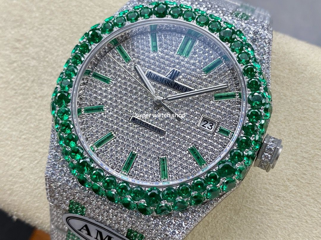In the world of luxury timepieces, some watches captivate at first glance, radiating an irresistible brilliance. The AP Audemars Piguet Royal Oak 15400 Full Diamond meticulously crafted by AMG Factory, elevates opulence to a whole new level with its exquisite craftsmanship and top-tier diamond setting.