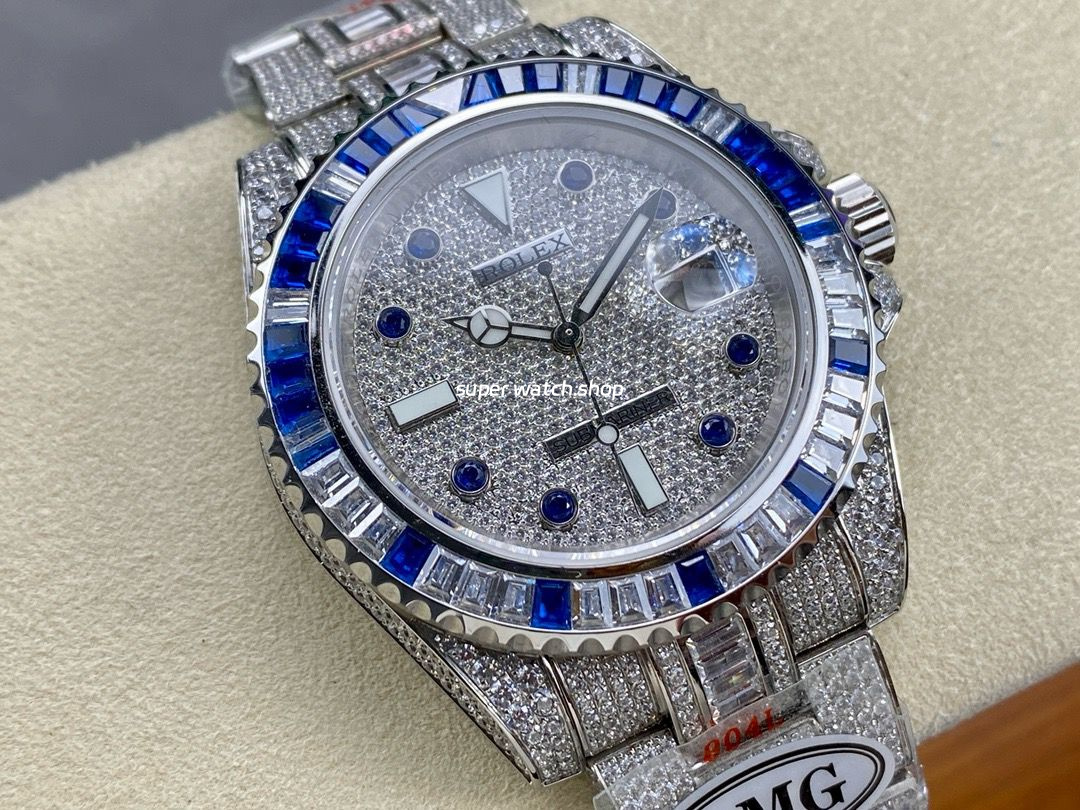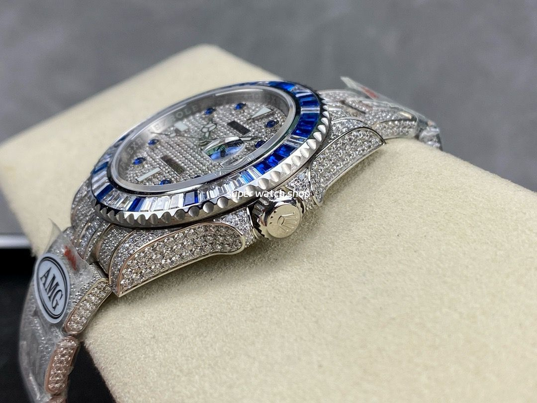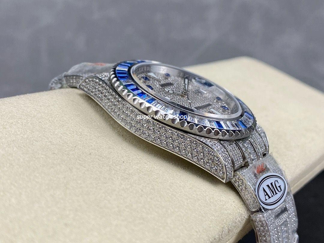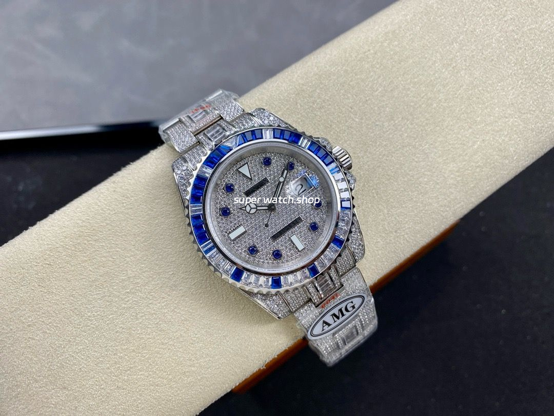 Ultimate luxury, dazzling brilliance! AMG proudly presents this exclusive custom timepiece, meticulously crafted with full diamond embellishment to recreate the opulence of the Rolex Submariner. The entire watch is adorned with top-grade Swarovski diamonds, radiating an exquisite glow that embodies noble prestige. A true symbol of status, this masterpiece allows you to experience high-end horology at an exceptional value!