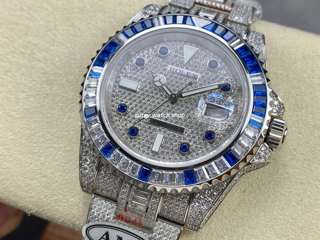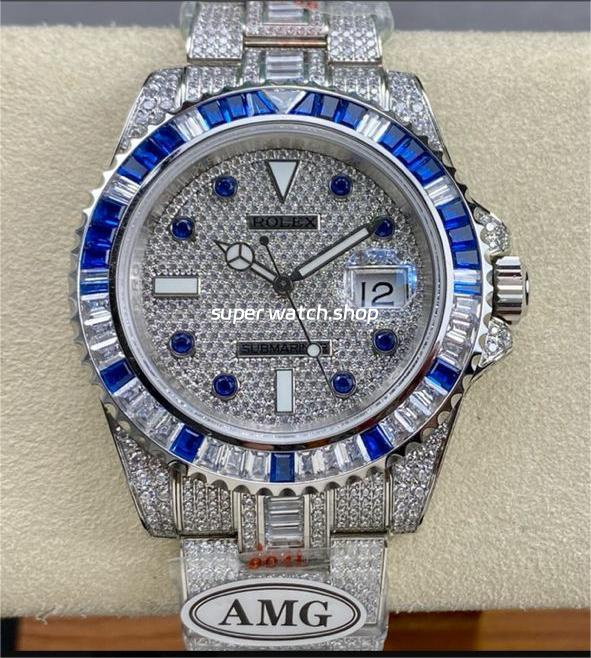 AMG Factory Rolex Submariner Date 116610 40mm Blue White Diamond Bezel Full 904L Diamond Blue Word Pin Diamond Dial