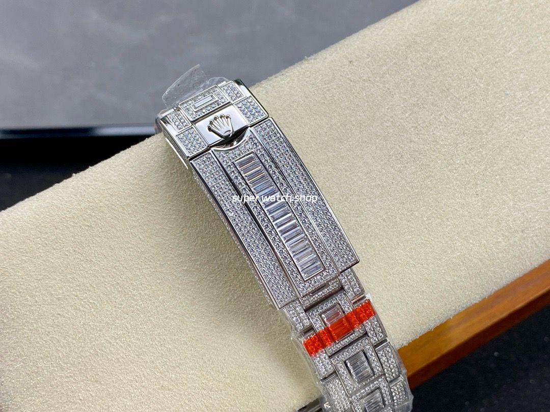 Diamond Setting: The bezel, case, and bracelet are meticulously encrusted with top-grade Swarovski diamonds, reflecting stunning brilliance from every angle.