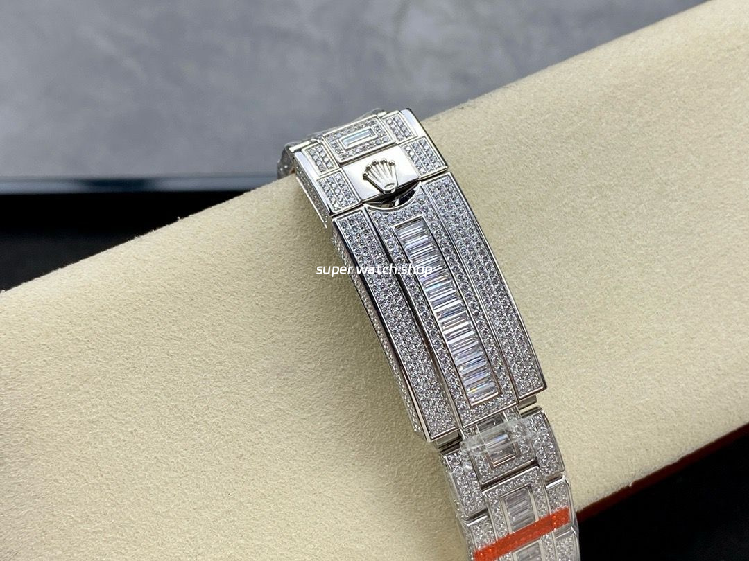 [Case] ​​Watch size 40mm. Made of Germany’s latest top-grade 904L Oystersteel. The bezel, case, and bracelet are densely studded with top-notch Swarovski diamonds. Try to restore the extremely luxurious and invincible texture of the original product.