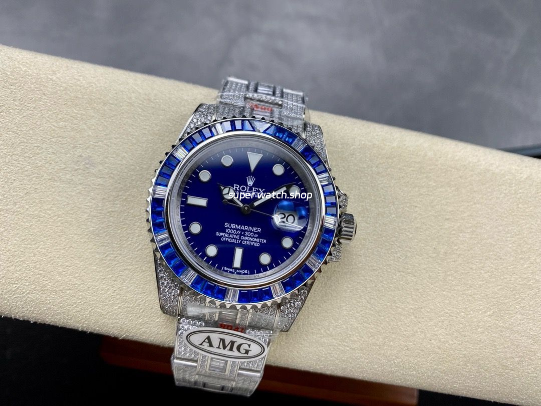 A customized and personalized special model from the Laurie family, it is extremely luxurious. AMG perfectly restores the most expensive Rolex star-studded wristwatch in history: the Submariner model with pavé diamonds! The entire watch is inlaid with Swarovski diamonds, showing exquisite beauty and enhancing the aristocratic temperament of the wearer. The ultimate luxury status symbol! Wouldn’t it be great to spend less money and enjoy a high-end experience?