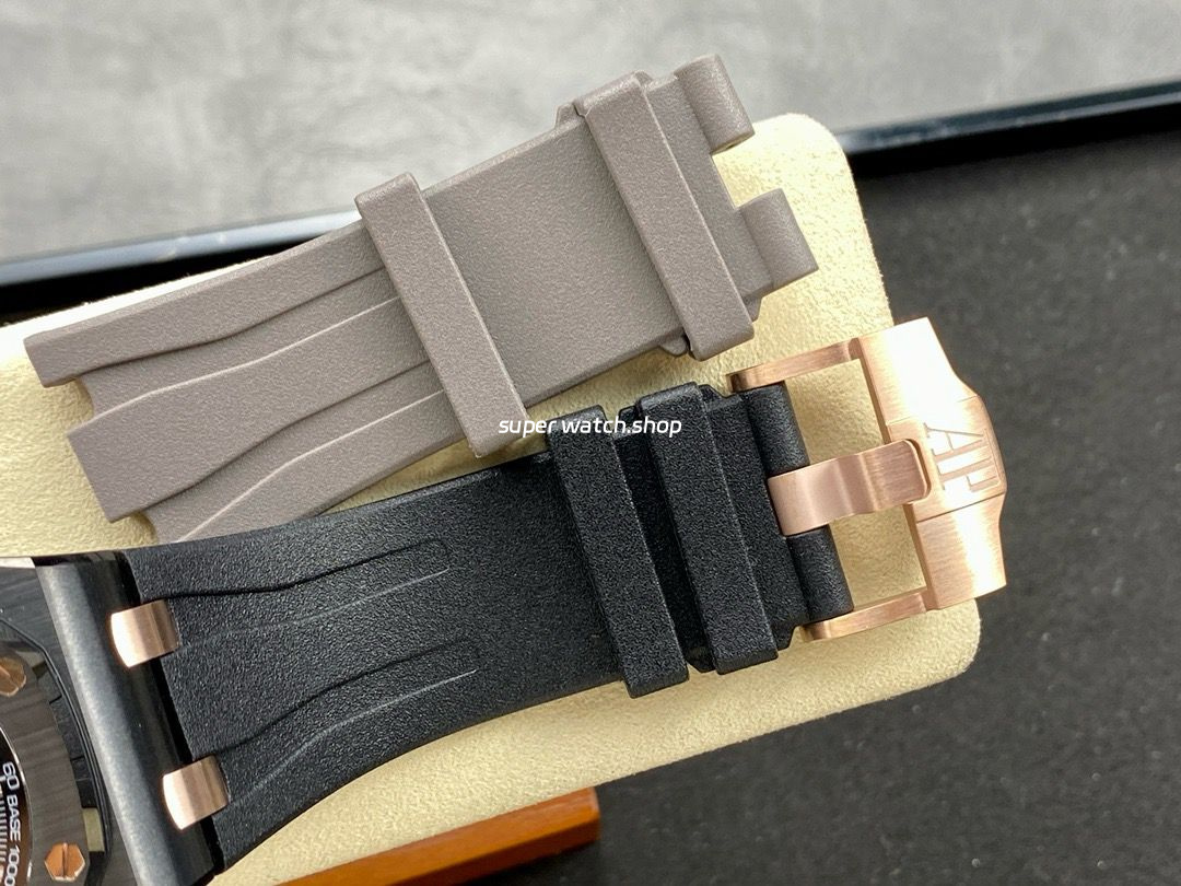 The V2 model features an original pin buckle design, meticulously polished and brushed for a refined yet rugged finish. The buckle’s design mirrors AP’s signature octagonal bezel, reinforcing the watch’s bold and powerful character.