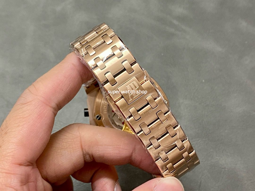 The V2 model features an original pin buckle design, meticulously polished and brushed for a refined yet rugged finish. The buckle’s design mirrors AP’s signature octagonal bezel, reinforcing the watch’s bold and powerful character.