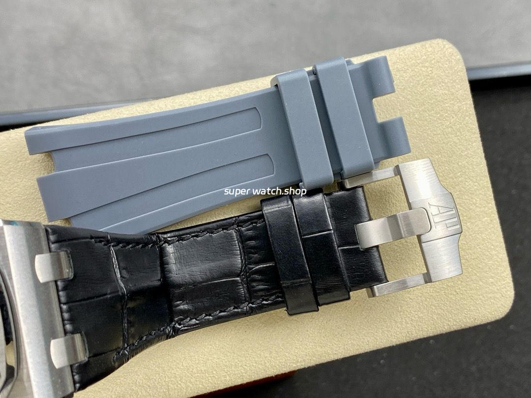 The V2 model features an original pin buckle design, meticulously polished and brushed for a refined yet rugged finish. The buckle’s design mirrors AP’s signature octagonal bezel, reinforcing the watch’s bold and powerful character.