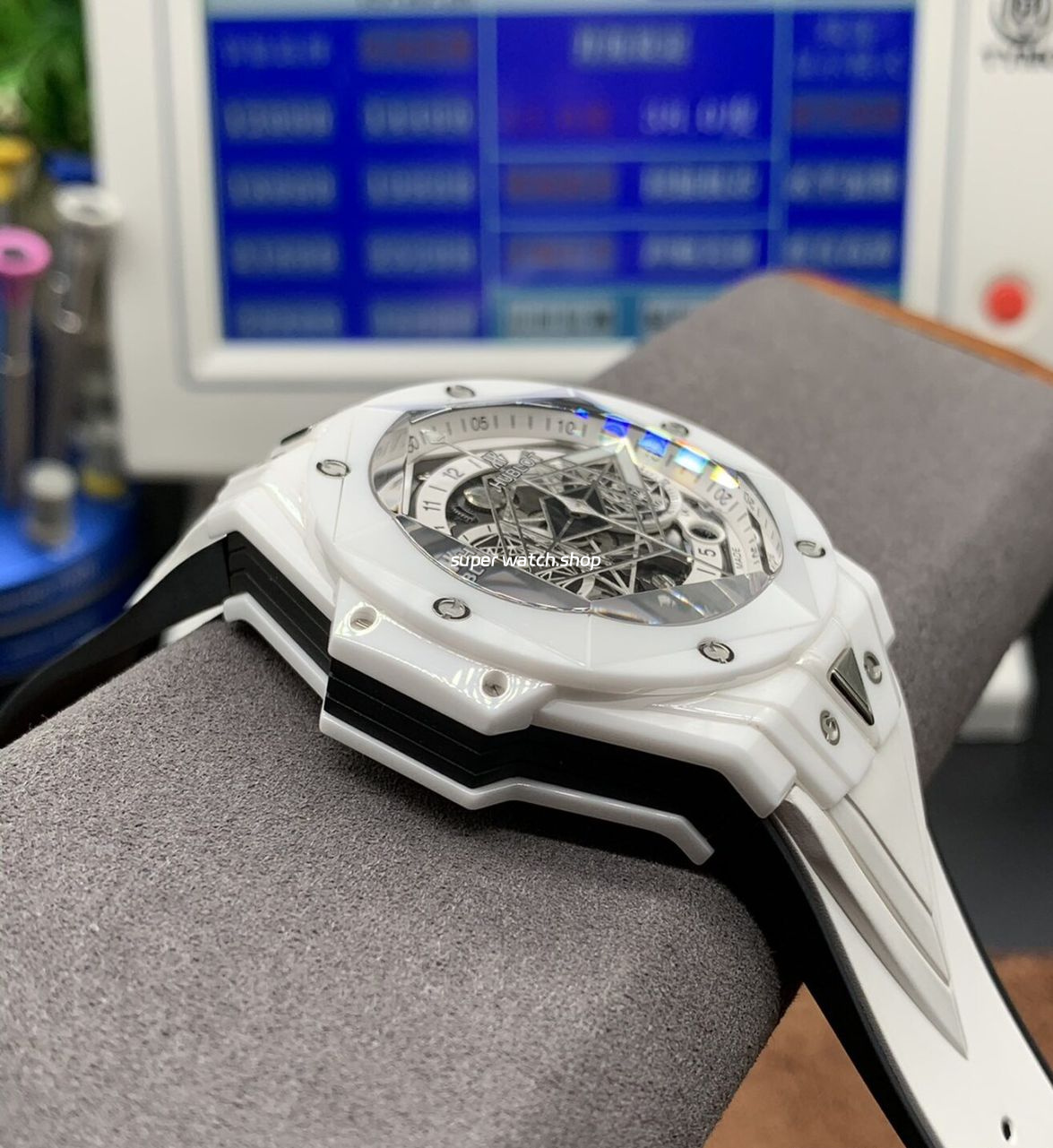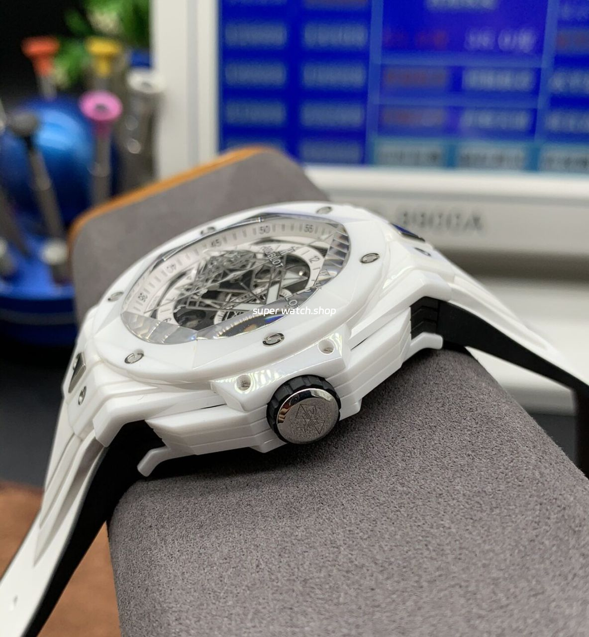 BBF Factory Hublot Big Bang Sang Bleu II 45mm 418.HX.2001.RX.MXM2 White Ceramics White Rubber Strap White Skeletonized Dial