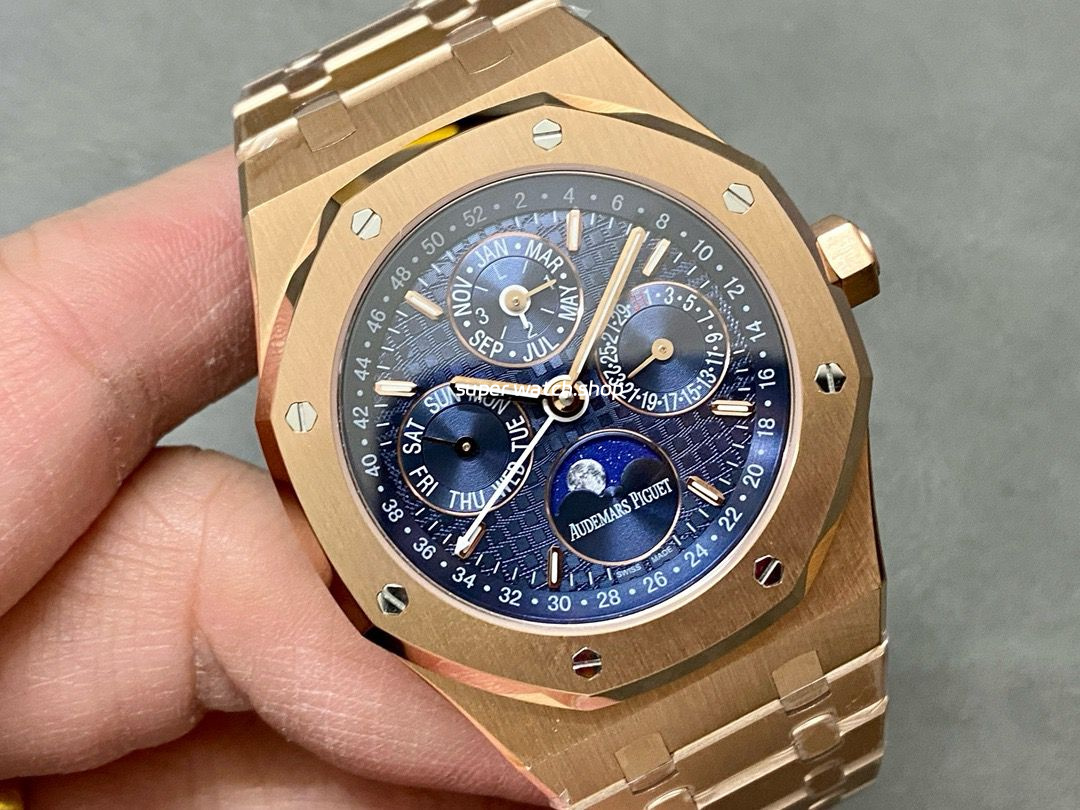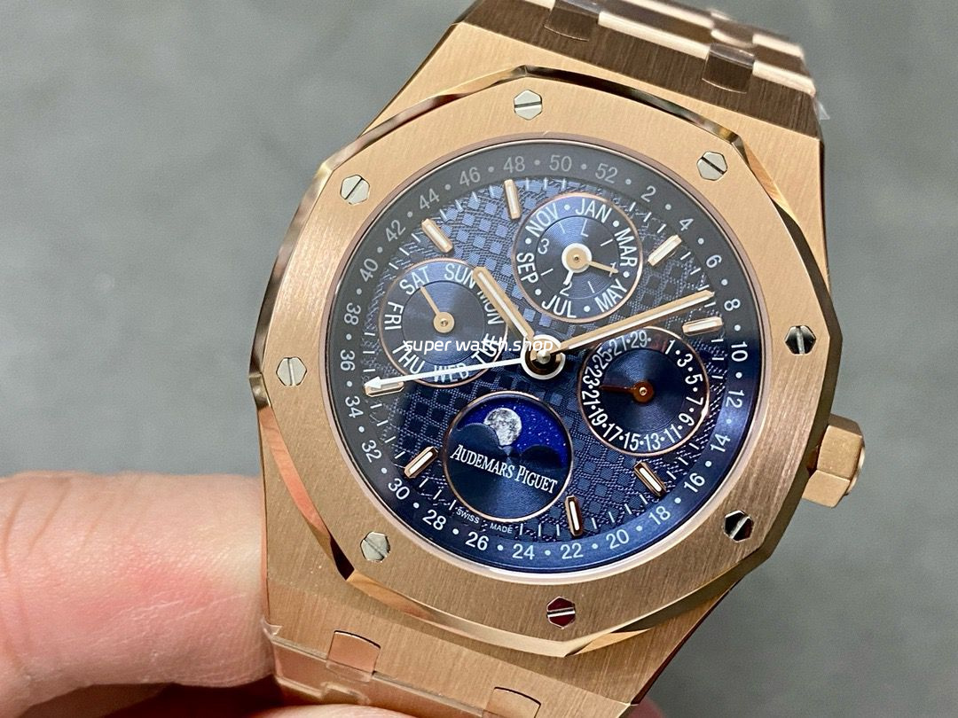 BBR Factory Audemars Piguet Royal Oak Perpetual Calendar 26574OR.OO.1220OR.02 41mm Full Rose Gold Steel Blue Dial