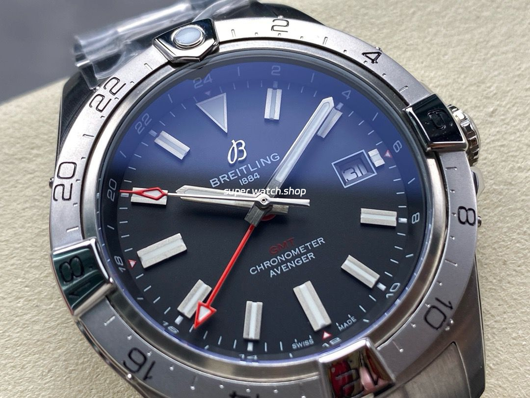 BLS Factory Breitling Avenger A32320101B1A1 44mm Full Steel Red GMT Needle Black Dial
