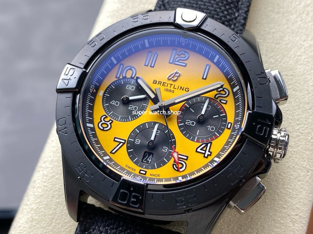 BLS Factory Breitling Avenger B01 Chronograph SB0147101I1X2 44mm Steel Black Calf Skin Strap Arabic Numerals Yellow Dial
