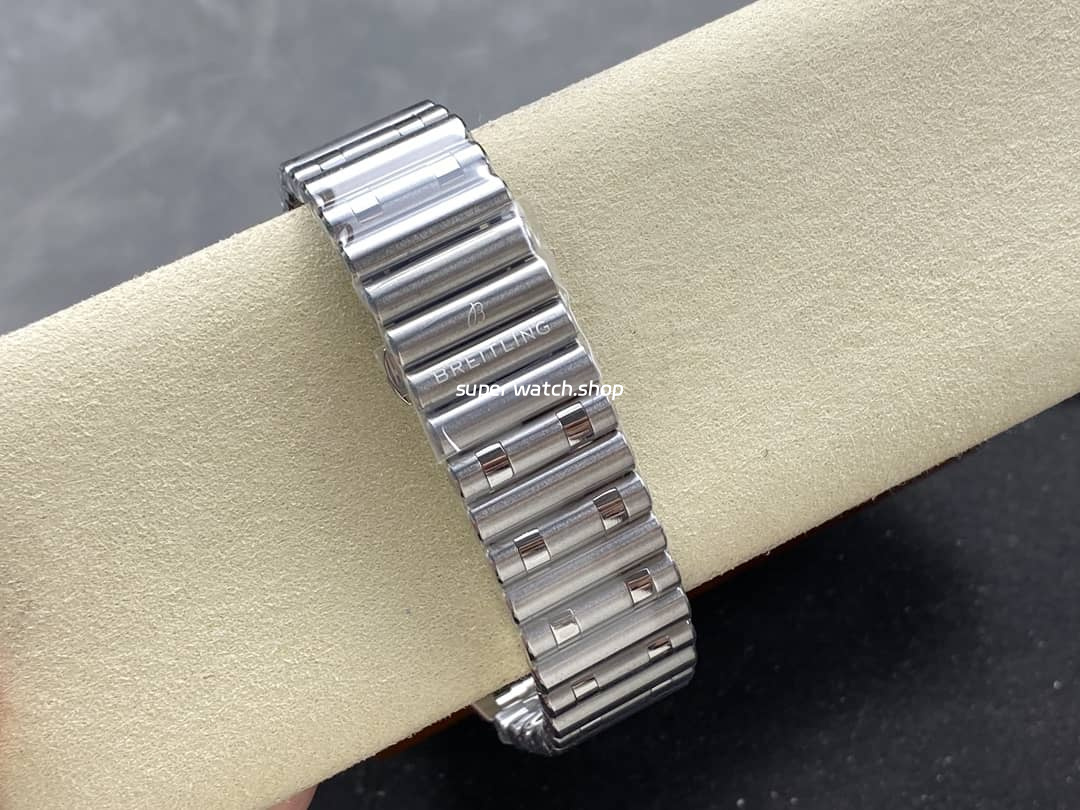 BLS Breitling Chronomat bullet chain, the much-anticipated stainless steel bracelet with butterfly buckle and roller beads is called a “bullet chain” because of its “bullet”-like appearance. Integrated smooth chamfering processing, every detail shows high-recognition mechanical beauty! The longitudinal brushing of the case shows the extraordinary polishing skills!