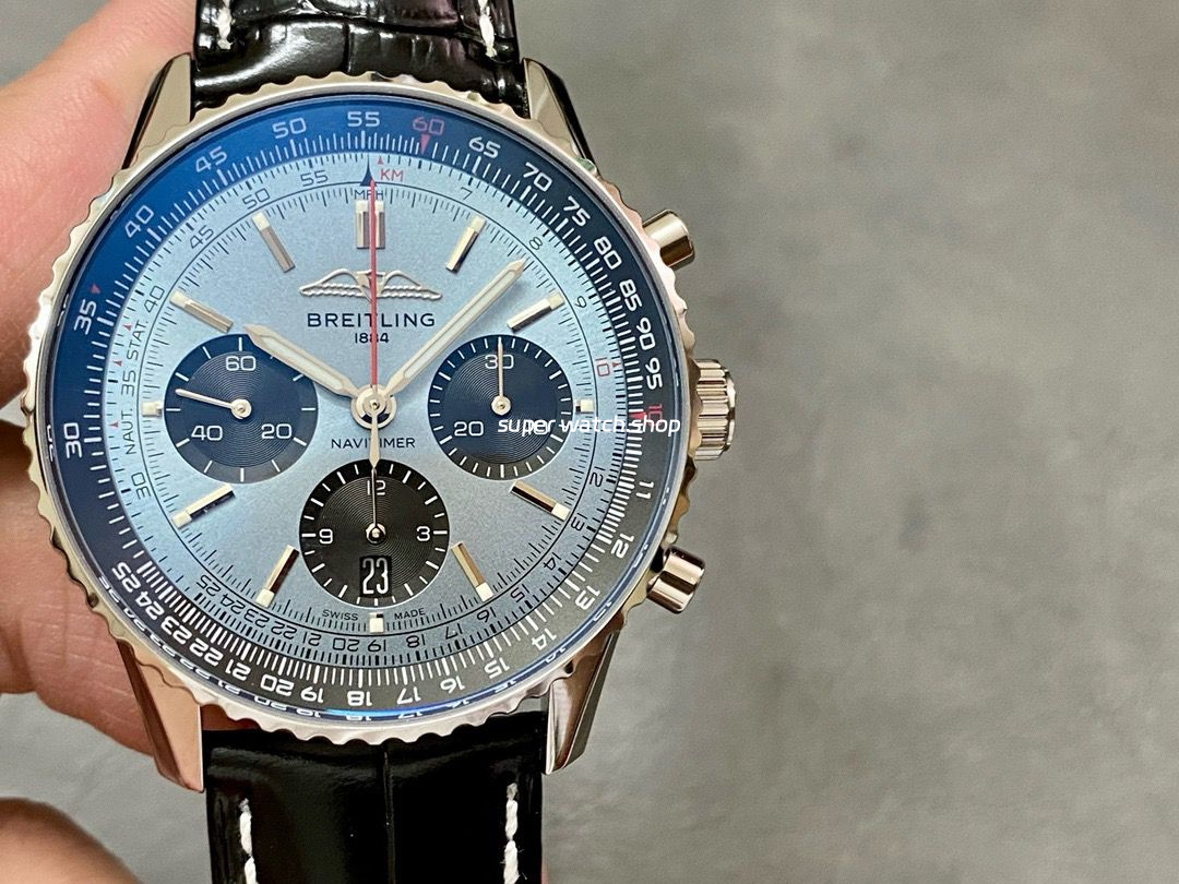 Be the first to review “BLS Factory Breitling Navitimer B01 Chronograph AB0138241C1P1 43mm Steel Leather Strap Black Eye Blue Dial”