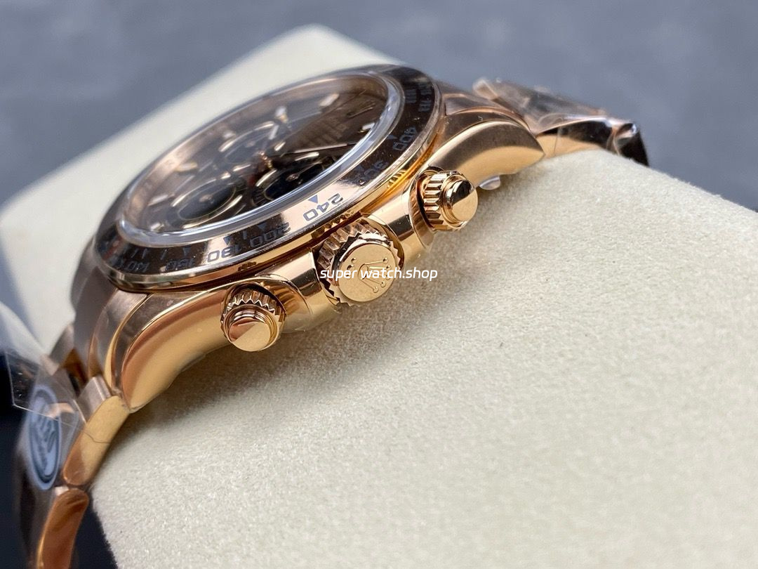 The Clean Factory Daytona 116505 is crafted from premium 904L stainless steel with vacuum-plated 18K Everose gold. The color tone is perfectly matched to Rolex’s proprietary Everose gold—neither too red nor too yellow—avoiding the common fading or discoloration issues found in lower-quality replicas.