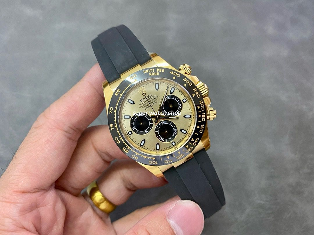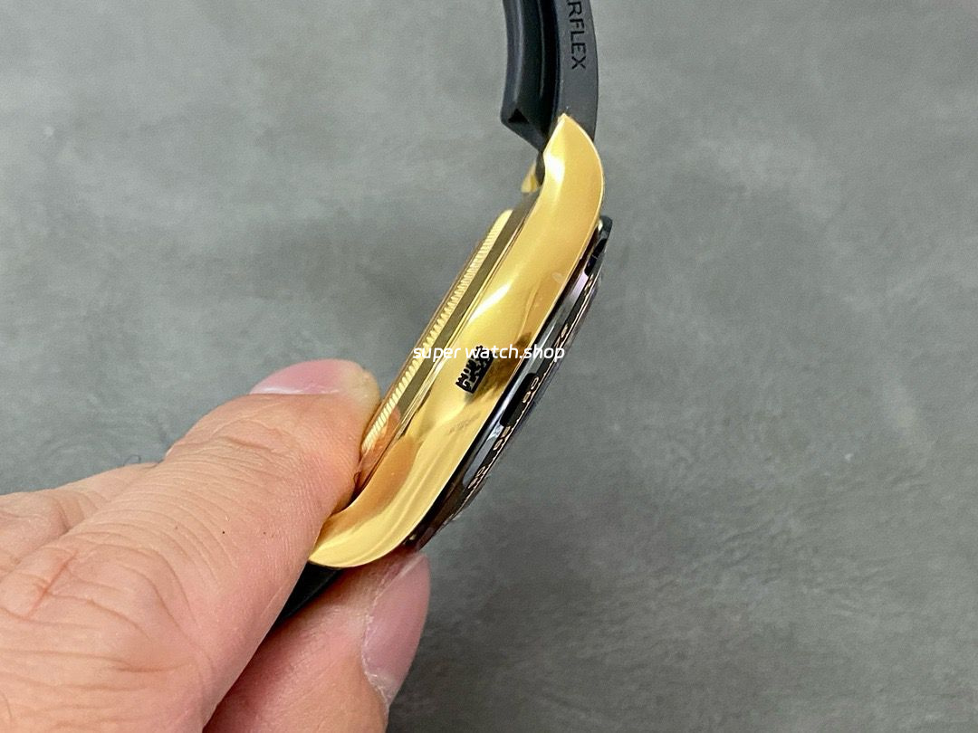 The Clean Factory Rolex Daytona 116518LN is a masterpiece that combines sporty elegance with luxurious aesthetics. The case is made of 904L stainless steel with 18K gold plating, delivering the same warm golden tone as the genuine model. The black ceramic bezel features deeply engraved tachymeter numerals with sharp, three-dimensional details, perfectly replicating the authentic look and feel.