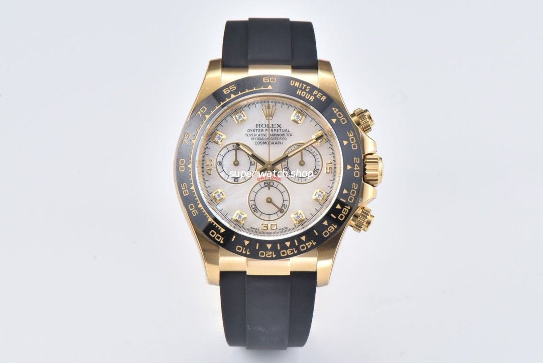 At the heart of this watch lies the upgraded Clean Factory 4130 integrated movement. This super clone movement not only matches the genuine Rolex visually but also supports full chronograph functionality. Its stability and accuracy make it one of the best replica Daytona options available, with a true 1:1 integrated balance wheel position.