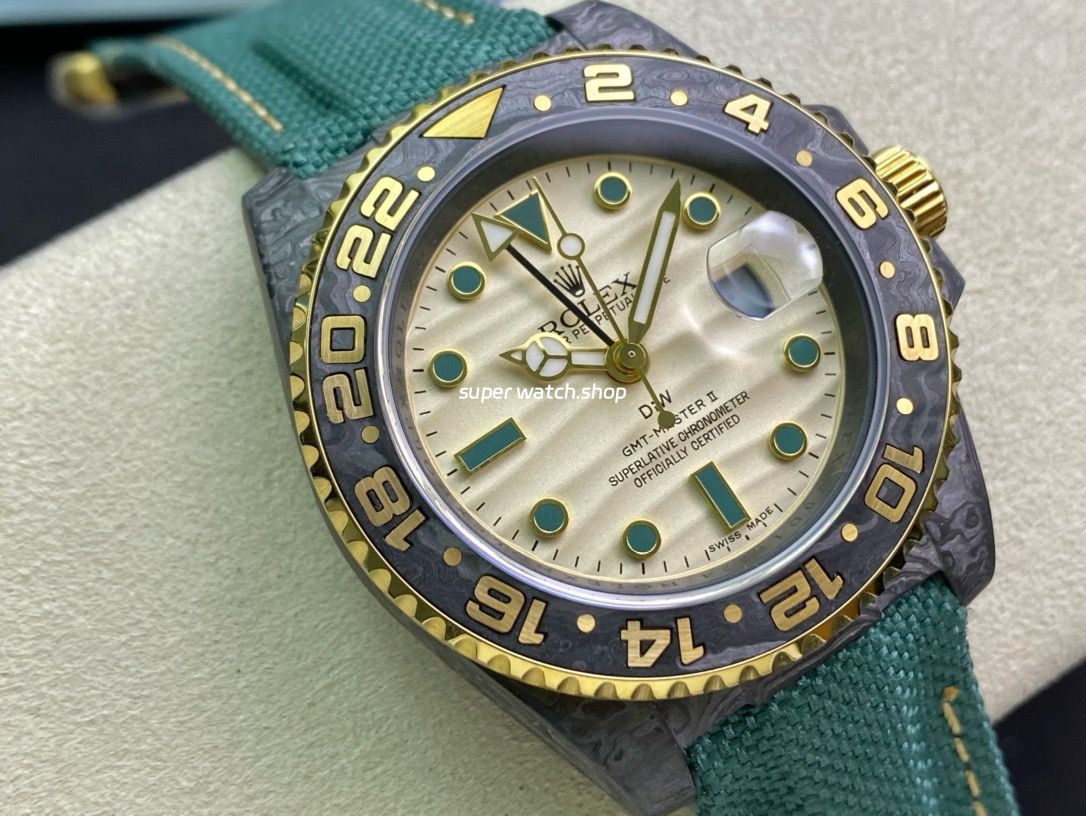 Be the first to review “DIW Factory Rolex GMT-Master II 126710 Limited Edition 40mm Gold Word Carbon Fiber Artificial Fiber Woven Strap Gold Dial”