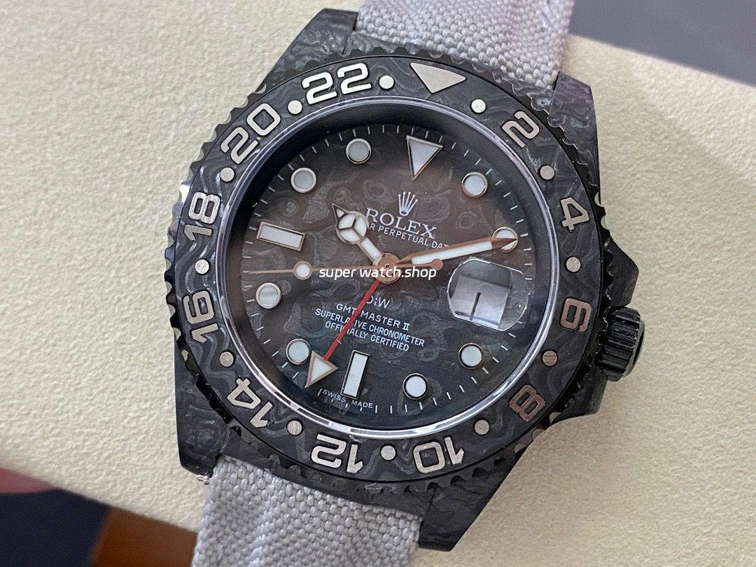 DIW Factory Rolex GMT-Master II 126710 Limited Edition 40mm Silver Word Carbon Fiber Artificial Fiber Woven Strap Carbon Fiber Dial