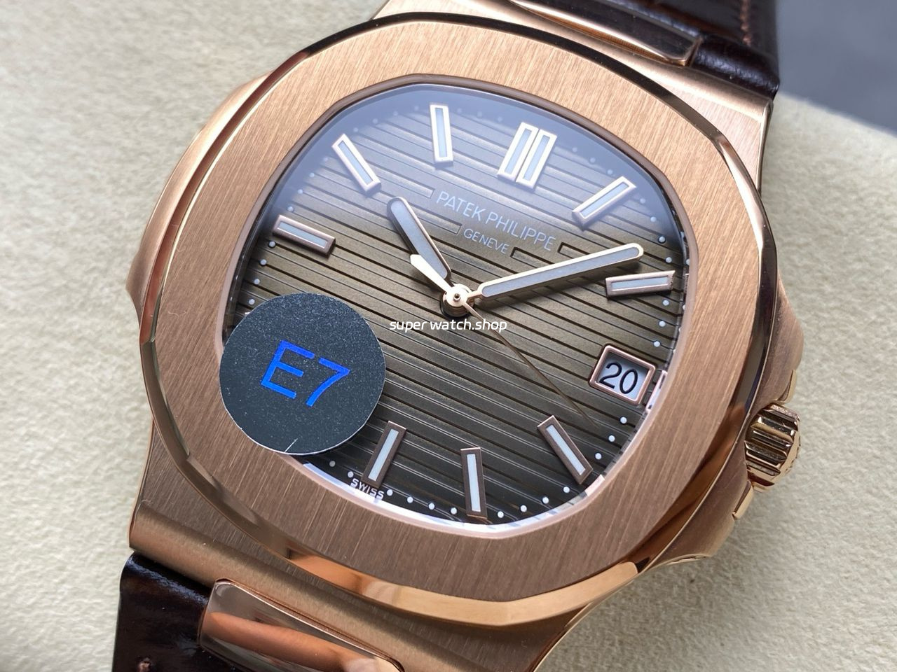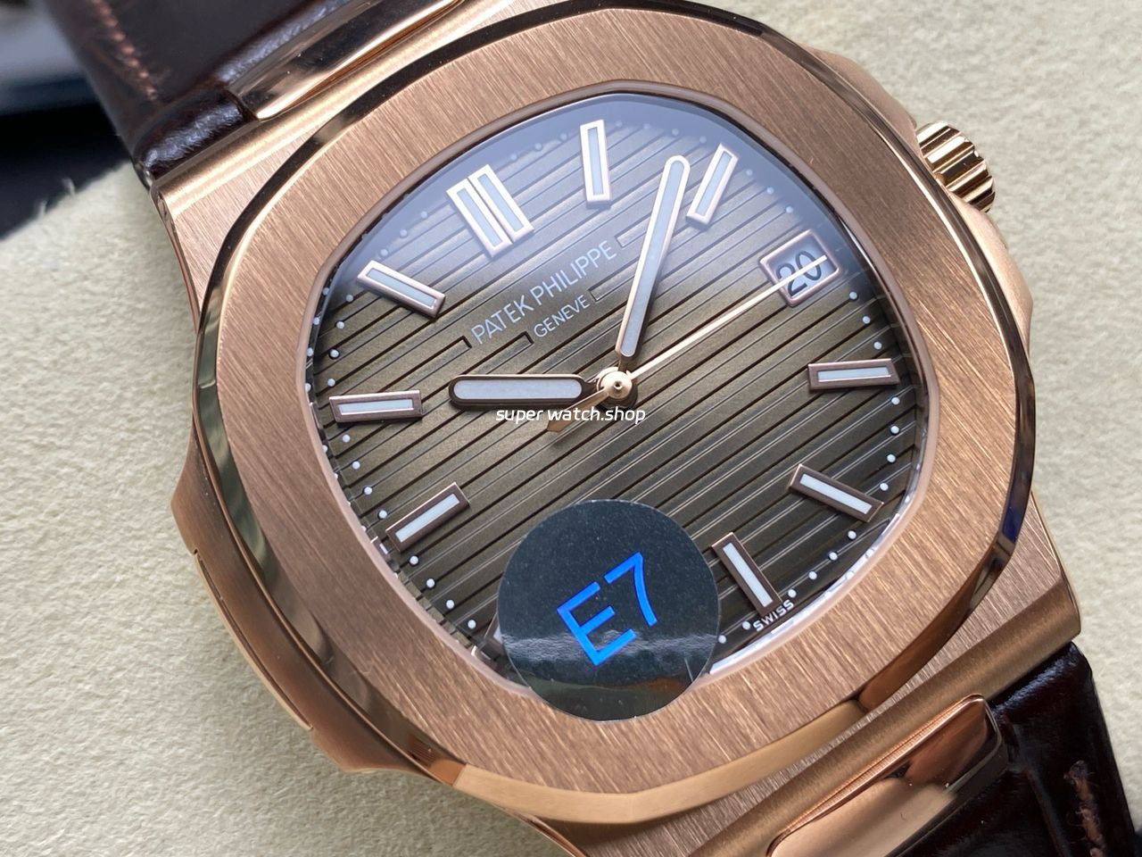 E7 Factory Patek Philippe Nautilus 5711/1R-001 40mm Leather Strap Rose Gold Brown Dial