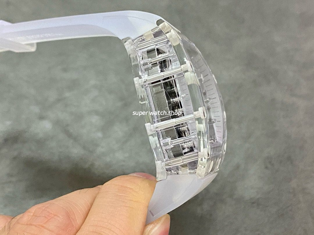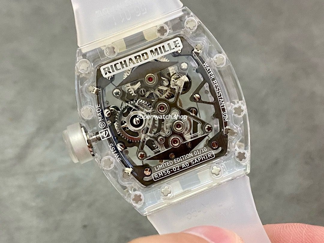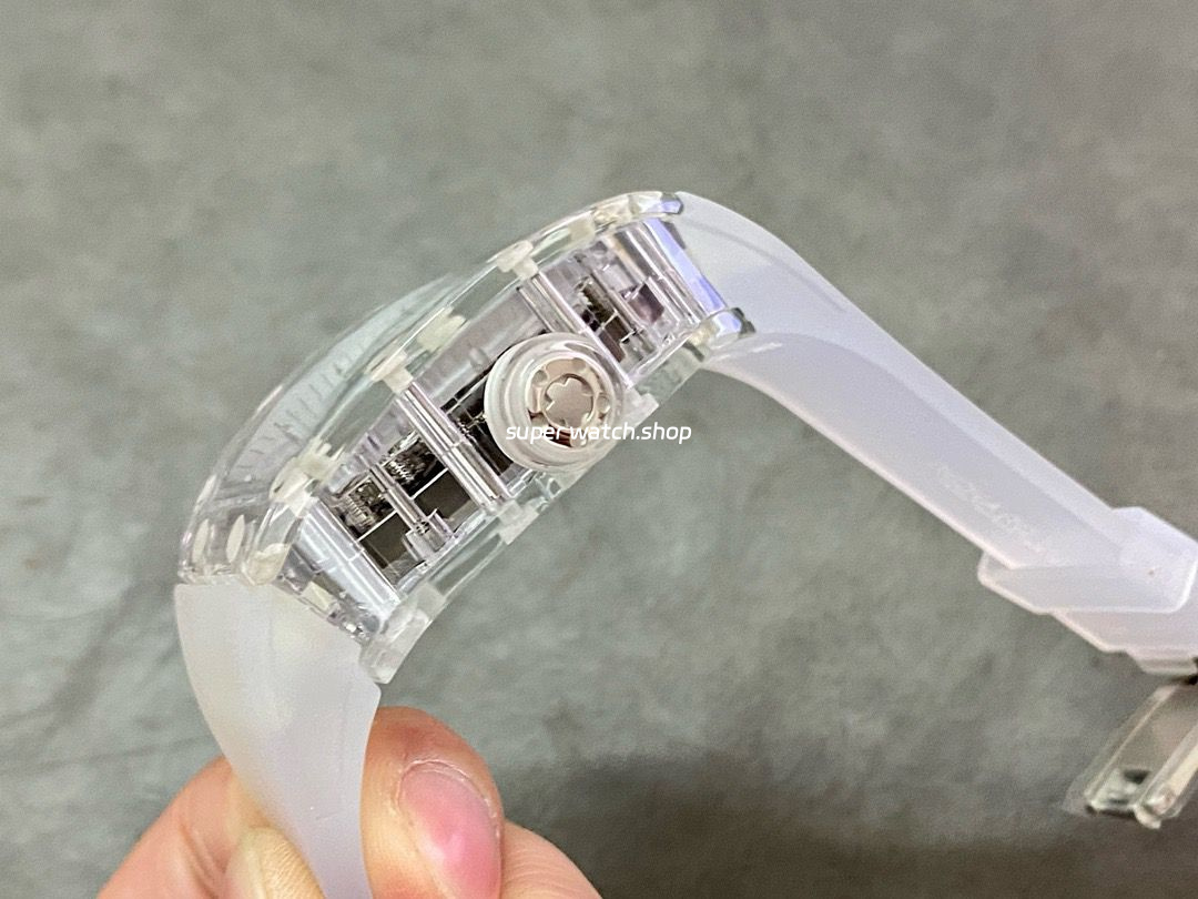 Thoroughly researched from the original RM056, the case is crafted from aerospace-grade titanium 30% lighter than standard titanium cases. The lock-down case structure is engineered to perfectly replicate the original, delivering crystal-clear transparency and a futuristic, multi-layered aesthetic.