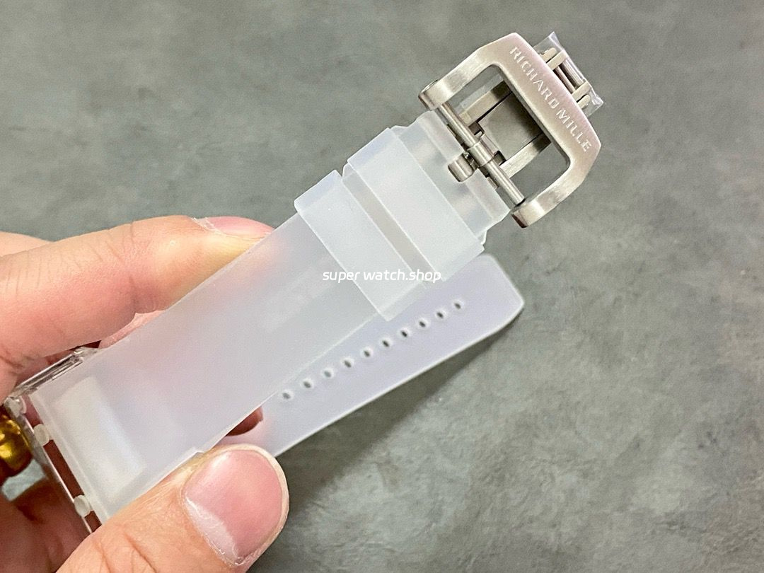 Equipped with a top-grade natural rubber strap sourced from Indonesia, it mirrors the authentic Richard Mille strap design. The honeycomb pattern enhances breathability and comfort, while preserving the sporty luxury feel of the watch.