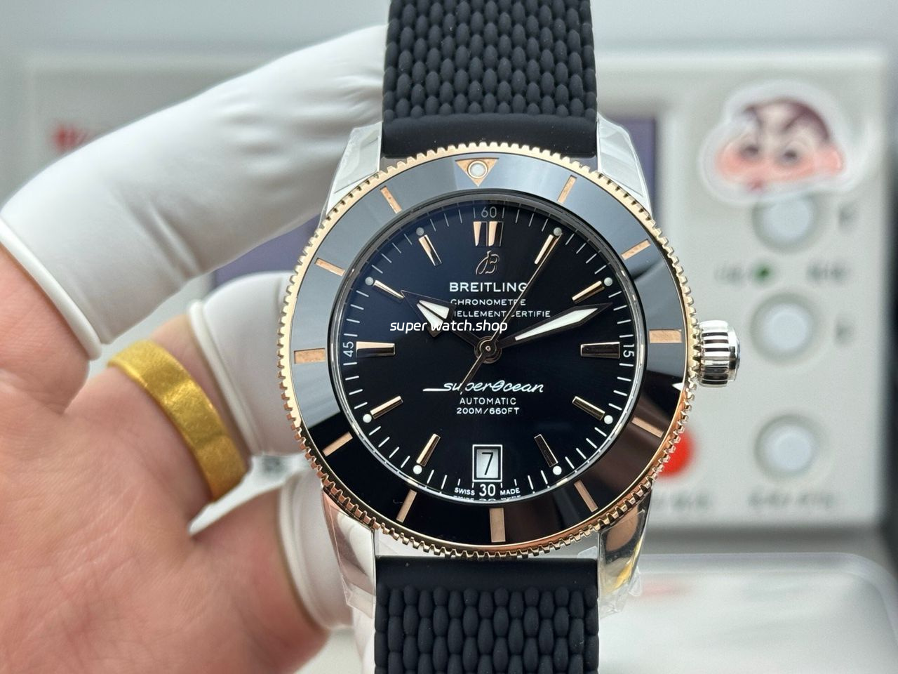 GF Factory Breitling Superocean Heritage B20 UB2010121B1A1 42mm Rubber Strap Gold Steel Black Dial