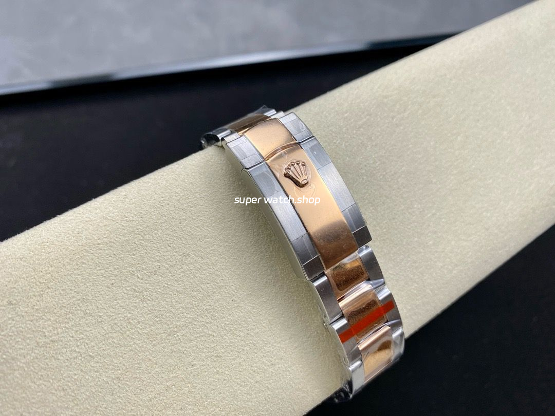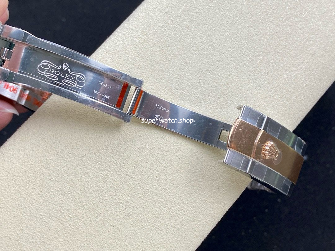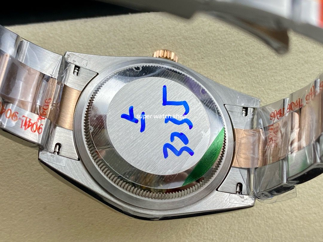 The case is made from 904L stainless steel, a highly corrosion-resistant material known for its excellent durability and unique fine luster. The 36mm case size is a timeless classic, making it perfect for daily wear without being overly conspicuous. The case lines are smooth, and the connection between the lugs and bracelet is seamless, showcasing GM Factory’s dedication to precision. The bracelet follows the classic Oyster three-link design, offering both comfort and a secure fit. The texture and shine of the 904L steel are nearly identical to the original.
