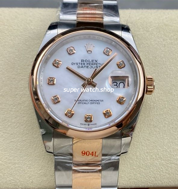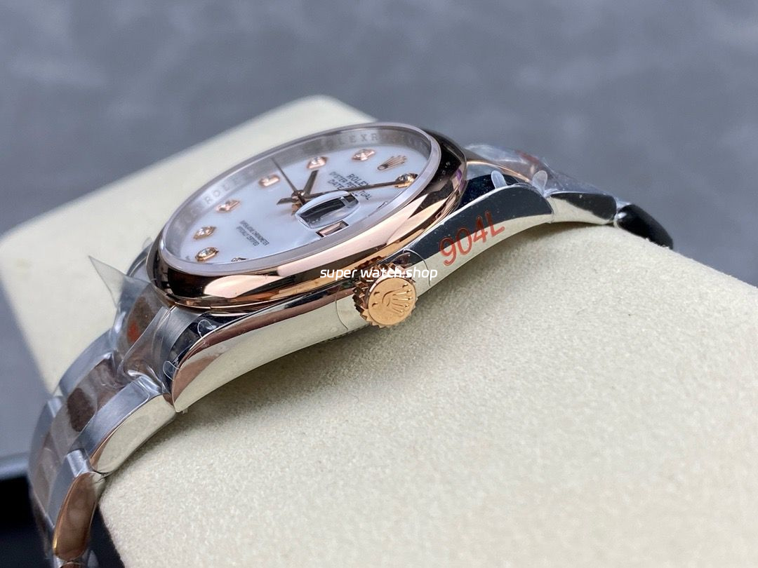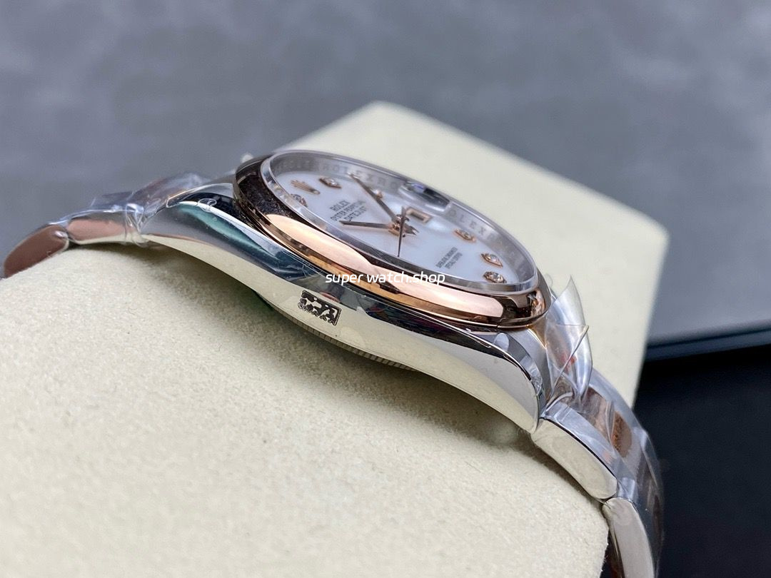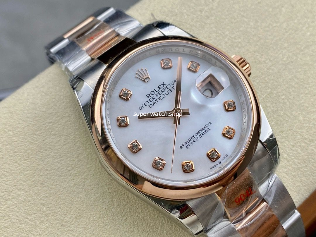 GM Factory Rolex Datejust 126201-0022 36mm Rose Gold Smooth Bezel Half Rose Gold Diamond Mop Mother Of Pearl Dial