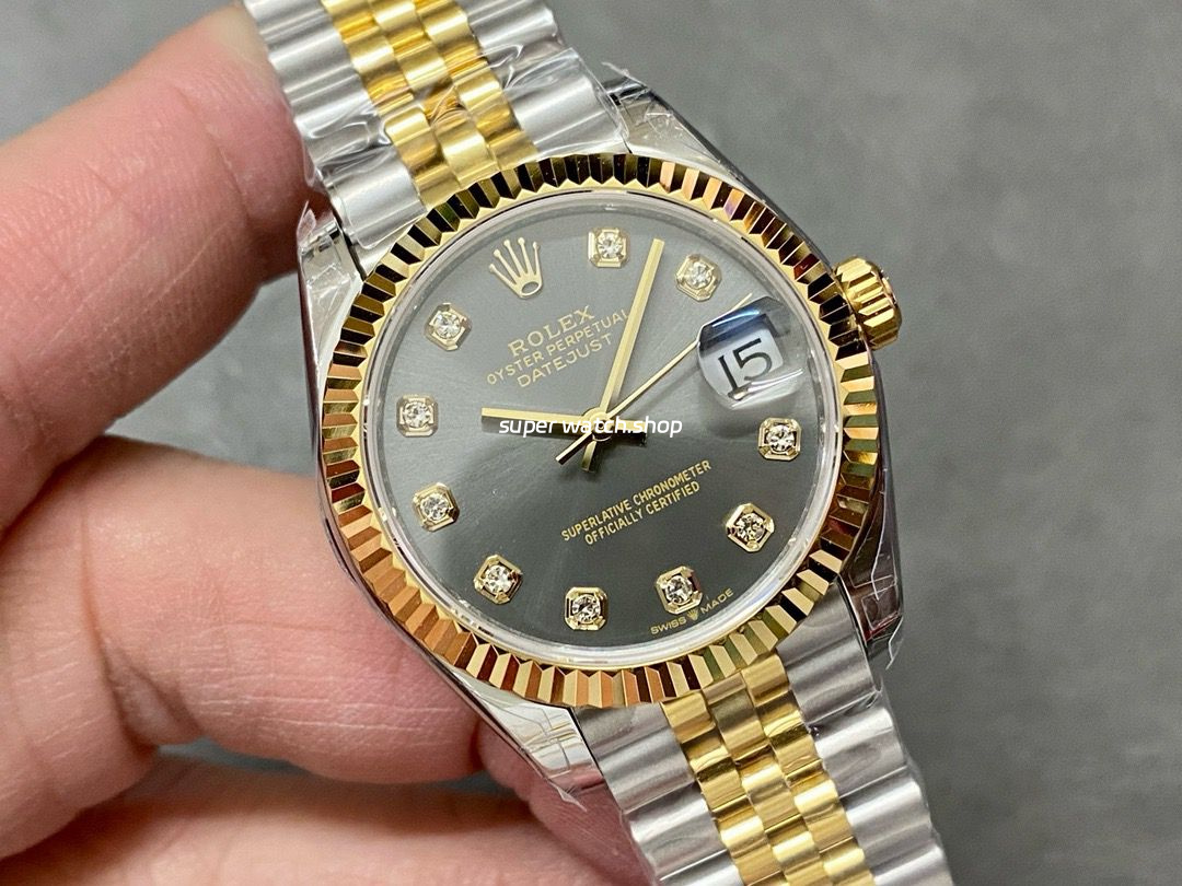 GS Factory Rolex Datejust 278273-0022 31MM Half Gold Diamond Mop Grey Dial Jubilee