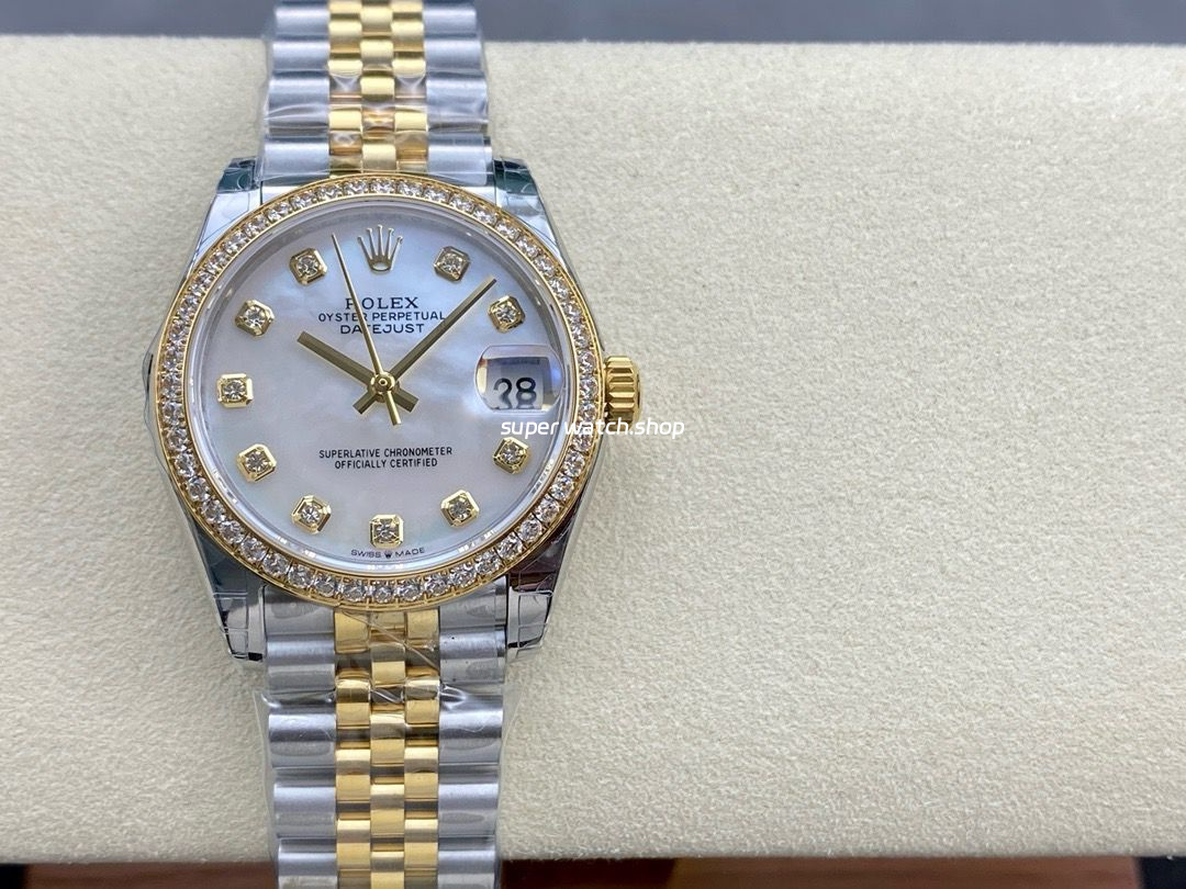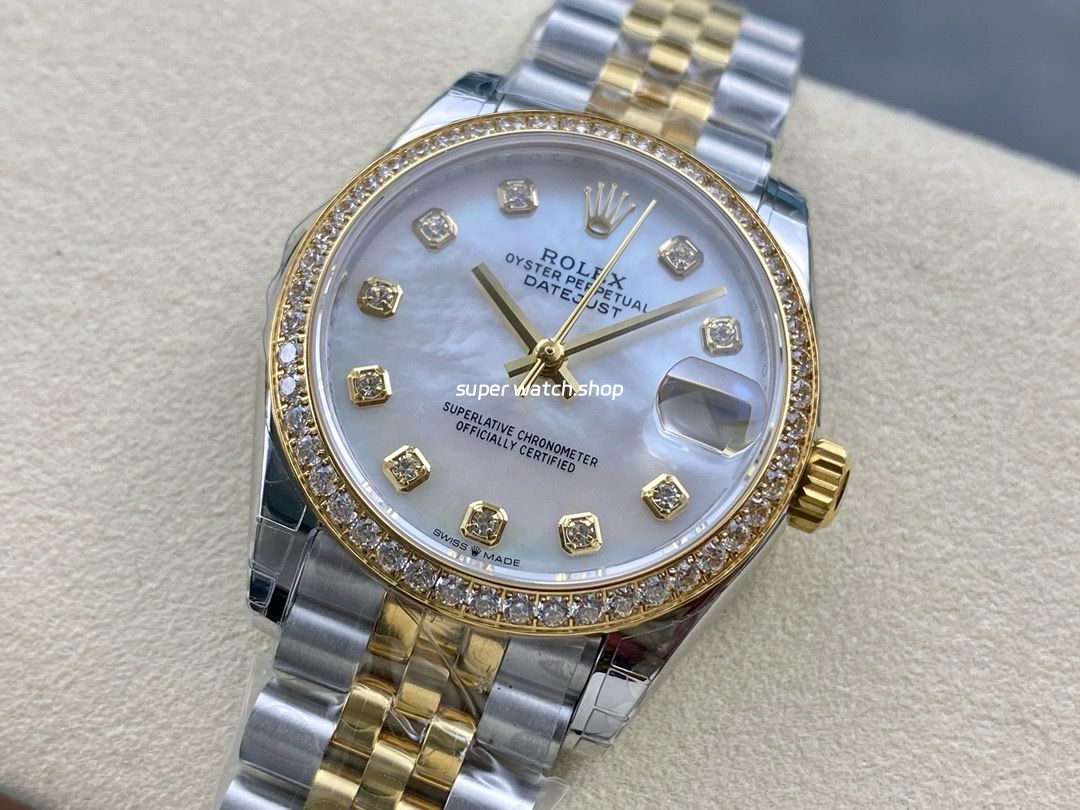 GS Factory Rolex Datejust 278383RBR-0028 31MM Diamond Bezel Half Gold Diamond Mop White Mother Of Pearl Dial Jubilee