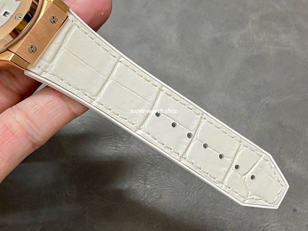 HB Factory Hublot Classic Fusion Chronograph 45mm Rose Gold Leather Strap White Dial