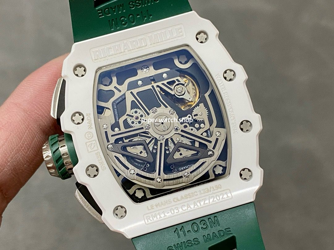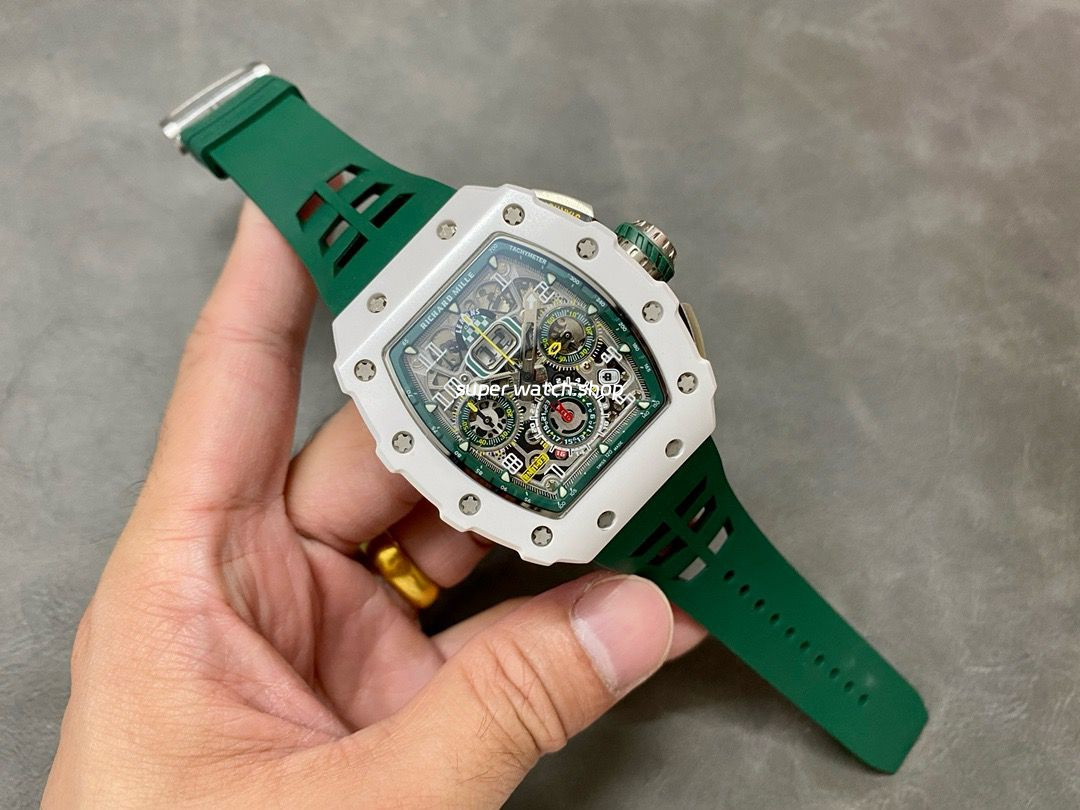 KV Factory Richard Mille RM011-03 CA ATZ 44.5mm Ceramic Green Rubber Strap Skeletonized Green Dial