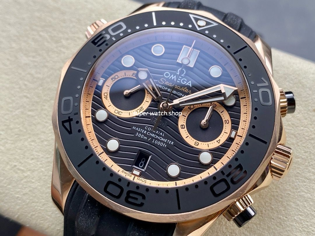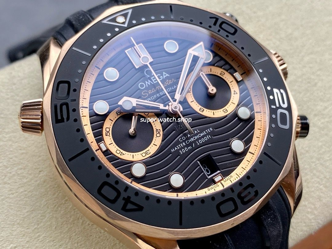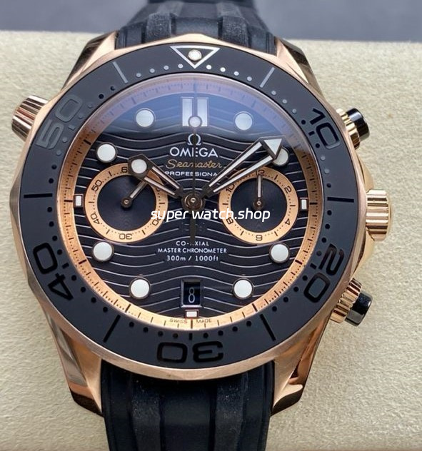 N1 Factory Omega Seamaster Diver 300M Co-Axial Chronometer Chronograph 210.62.44.51.01.001 44mm Rose Gold Black Rubber Strap Black Dial