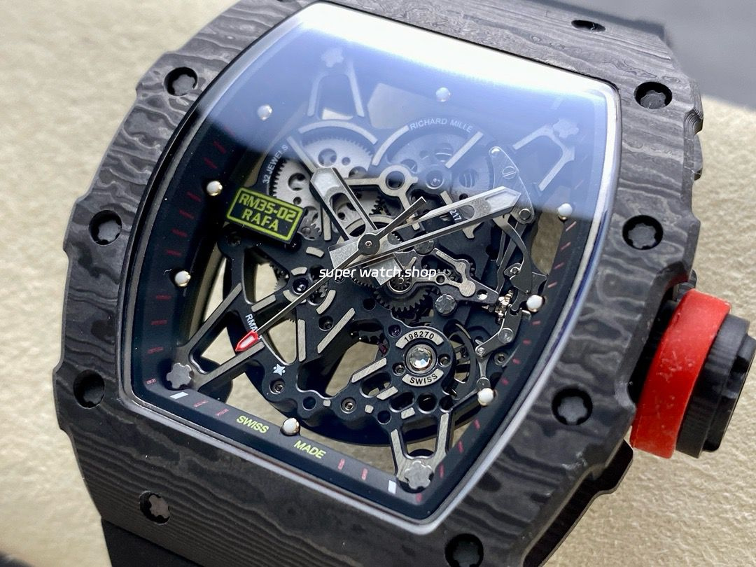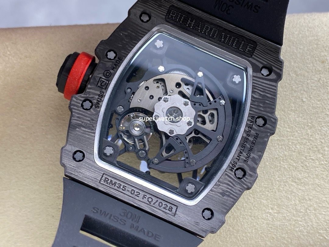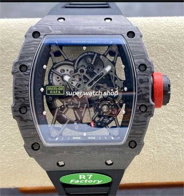 R7 Factory Richard Mille RM35-02 44.5mm Carbon Fiber Black Rubber Strap Skeletonized Dial