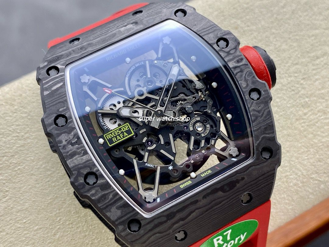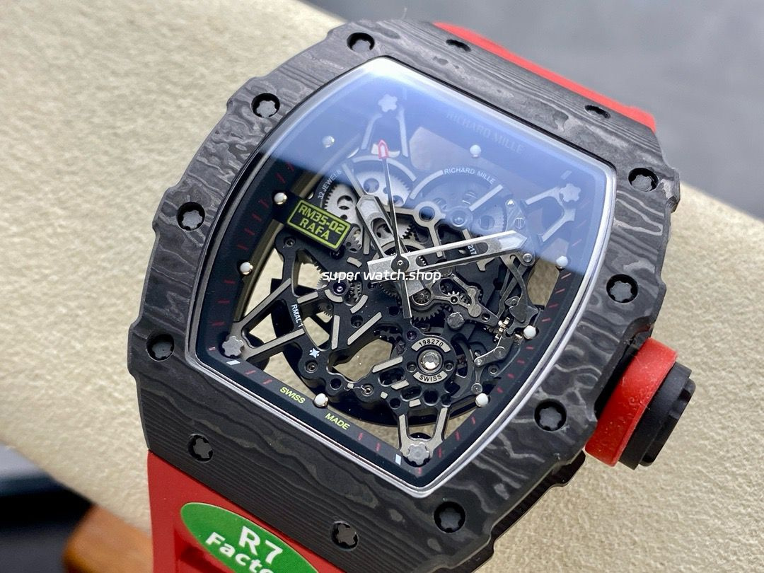 R7 Factory proudly presents the RM35-02, hailed as a game-changing replica that redefines the ceiling of the Richard Mille homage world. This model features an unprecedented level of detail, function, and structural accuracy, boasting the only true-to-original movement on the market.